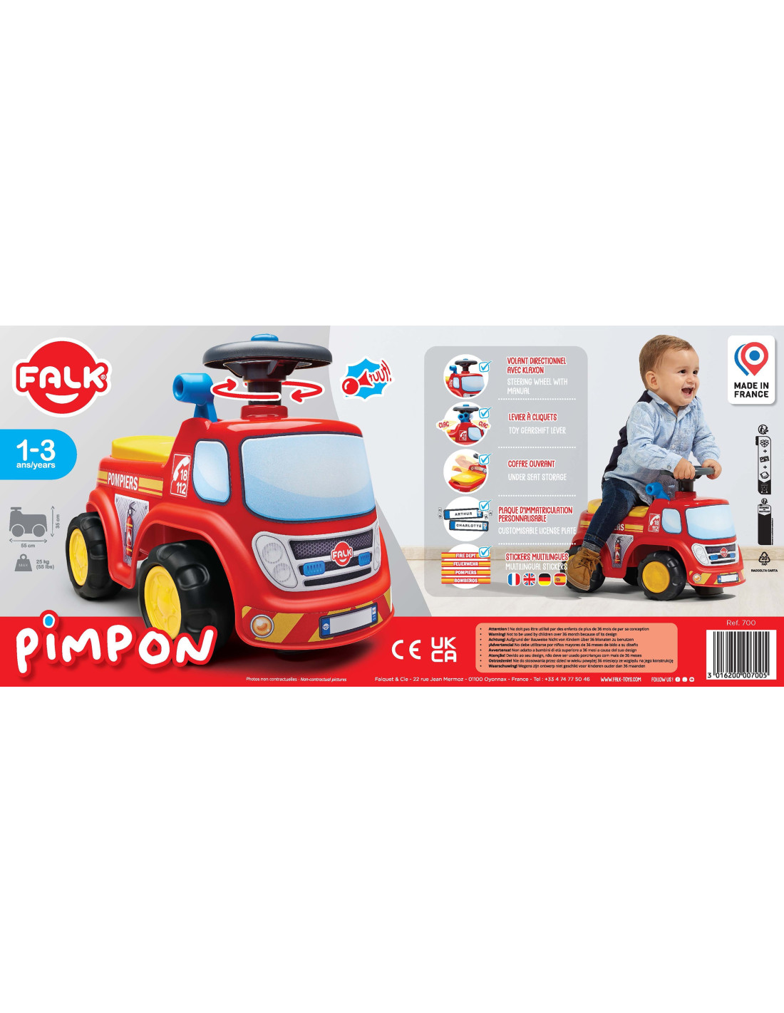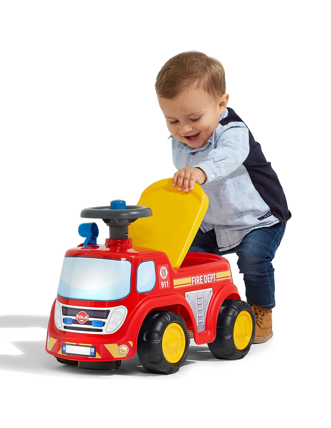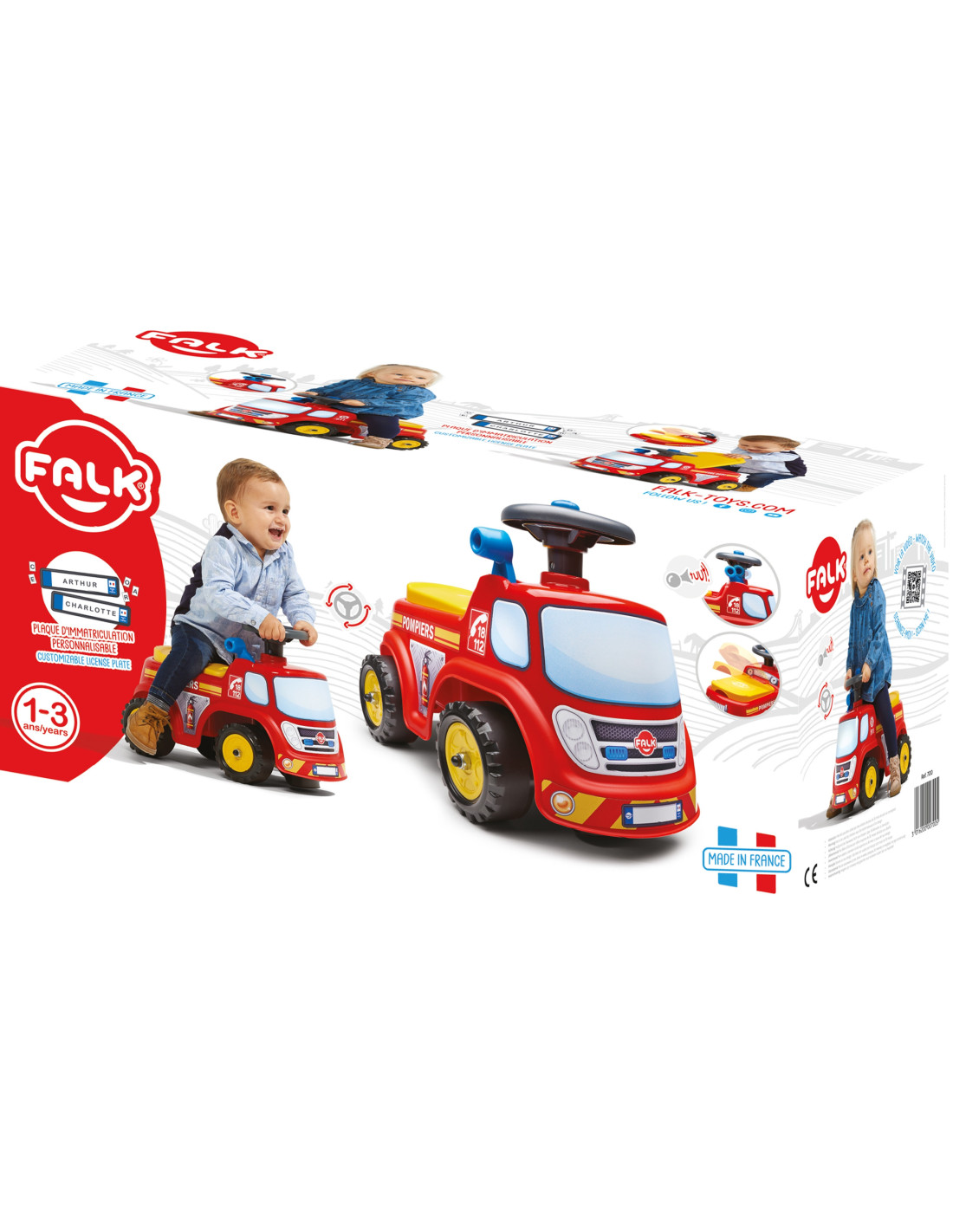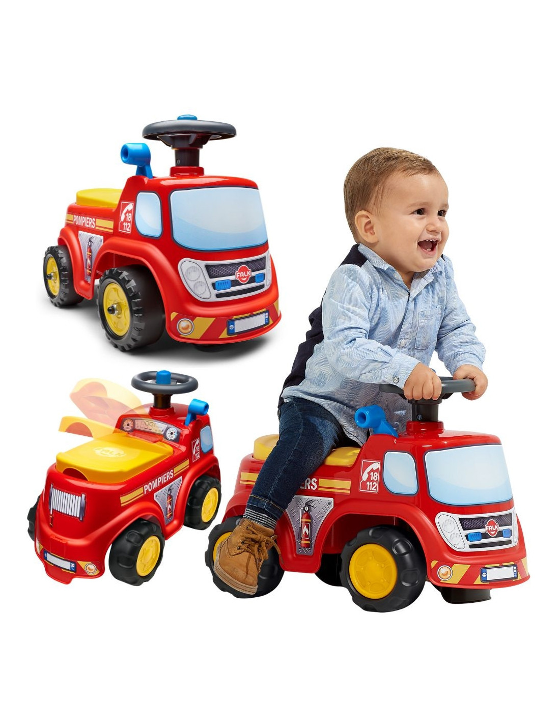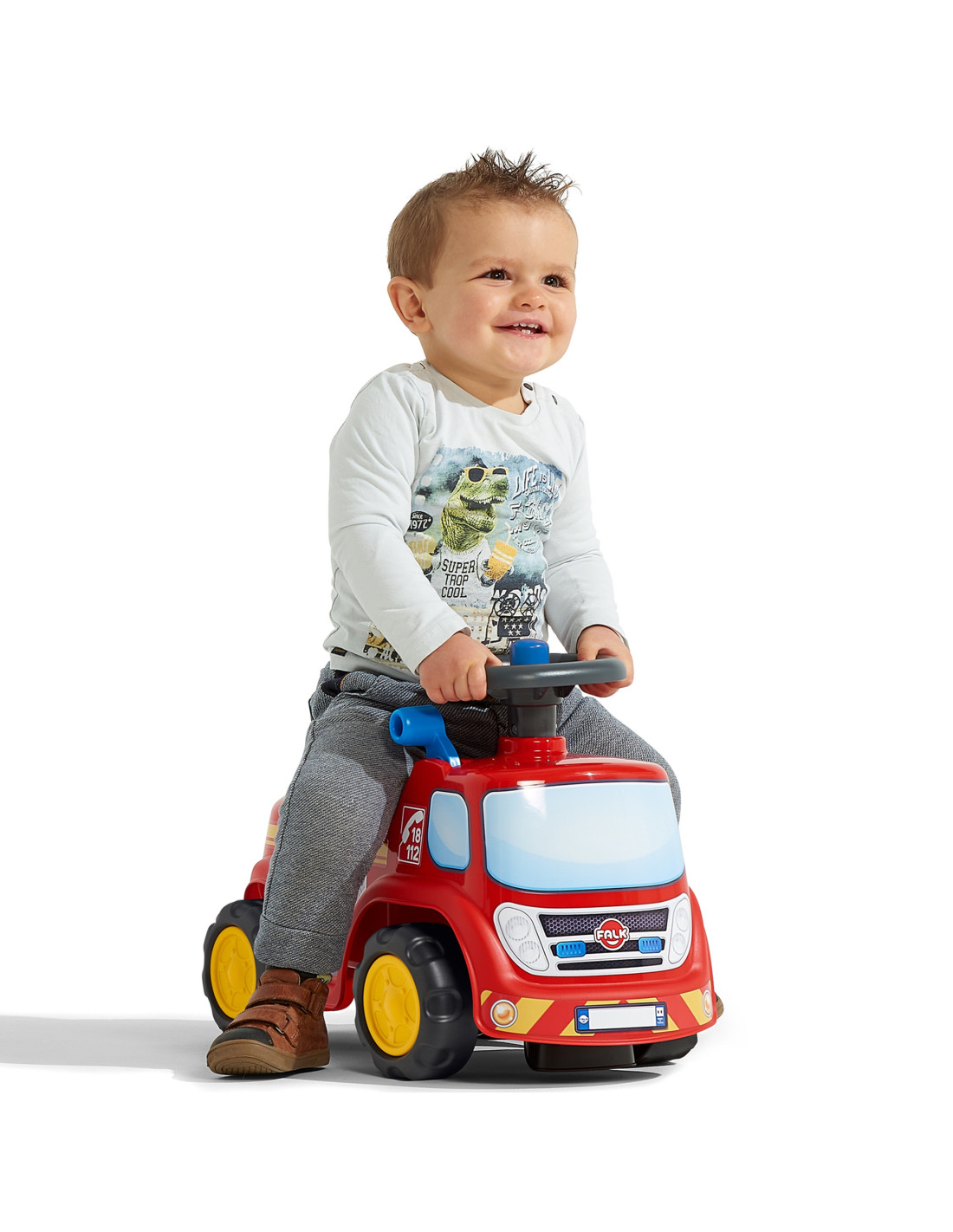 Ciężarówka strażacka Fireman marki FALK to jeździk który zachwyci Twoje dziecko. Dzięki kierownicy z klaksonem twój maluch będzie mógł łatwo manewrować rozwijając swoje umiejętności motoryczne Ten jeździk dziecięcy zawiera praktyczny schowek znajdujący się pod siedziskiem. Ma on również tablicę rejestracyjną, na której można nadać nazwę jeździkowi!