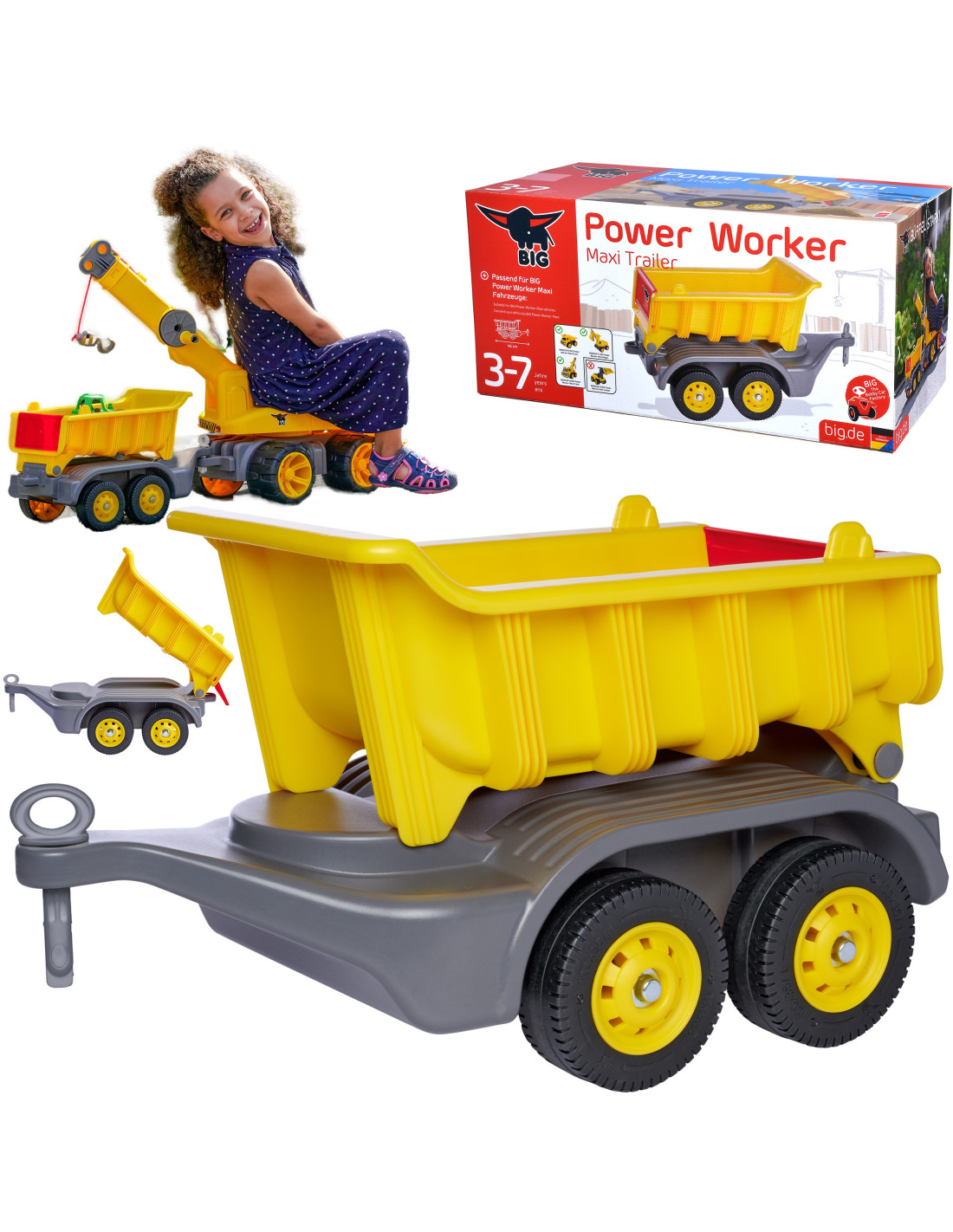 Nowe, potężne akcesorium z linii BIG Power Worker Maxi jest idealnym uzupełnieniem istniejących pojazdów budowlanych BIG Power Worker Maxi. Nową przyczepkę można łatwo przymocować do ciężarówki BIG Power Worker Maxi Truck, Maxi Digger i Maxi Crane za pomocą dołączonego zaczepu do przyczepy i zapewnia ona dzieciom dodatkowe miejsce do przechowywania zabawek do piasku i resztek z placu budowy. Dzięki wysokiej jakości oponom wykonanym z bardziej miękkiego, niebrudzącego plastiku, przyczepkę można bez problemu użytkować również w pomieszczeniach.