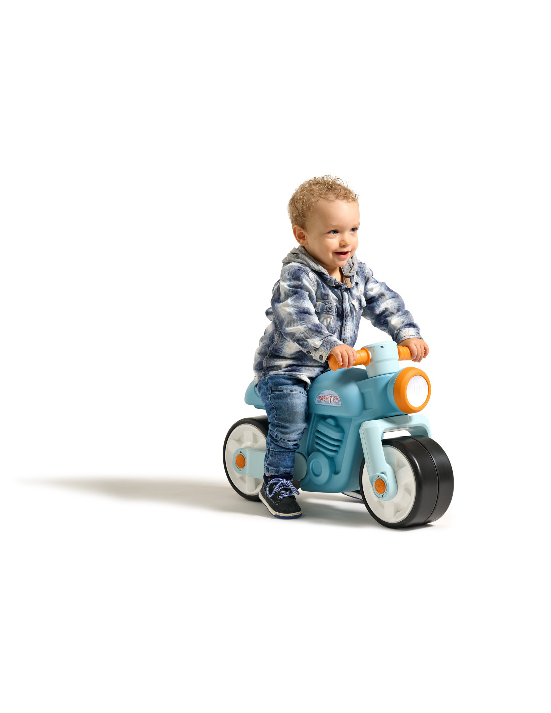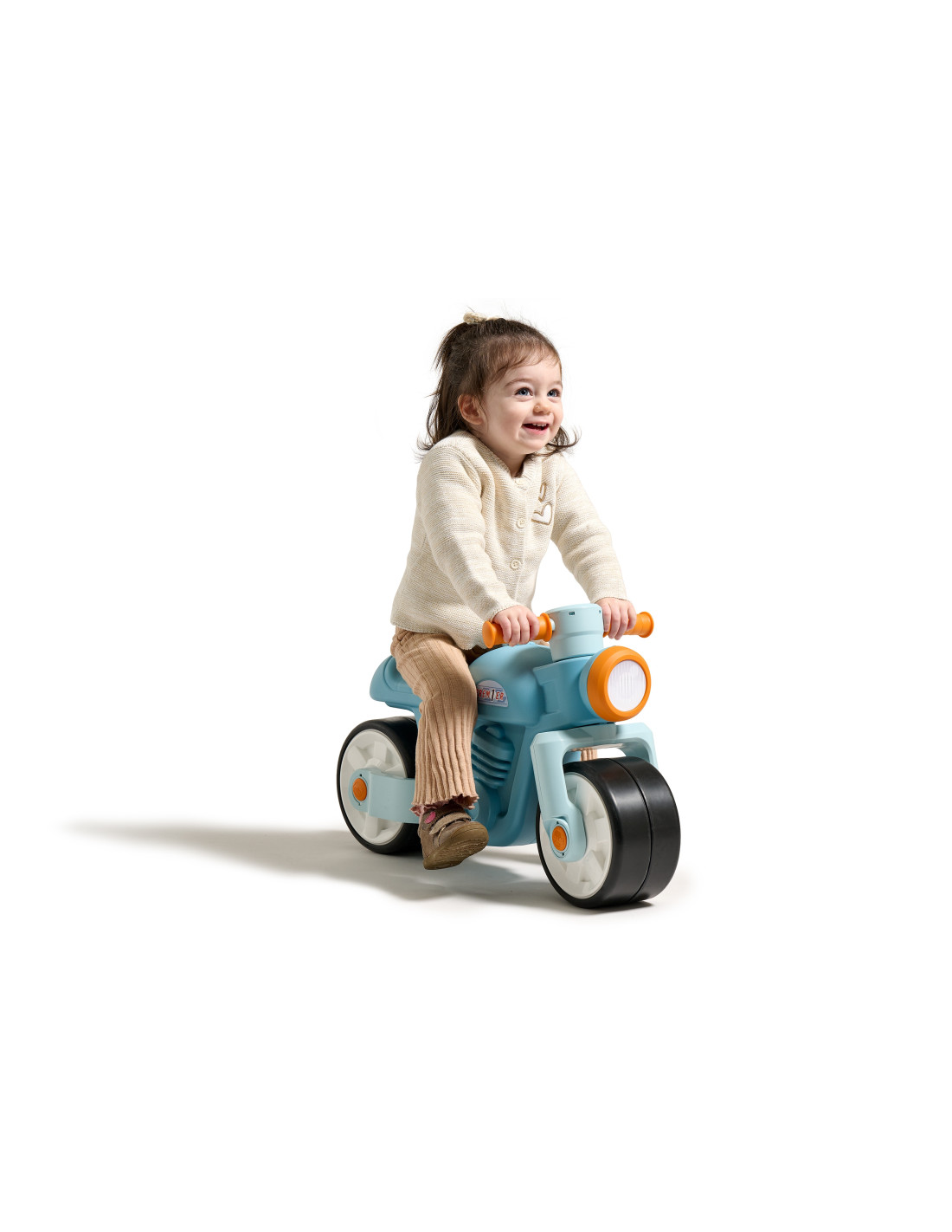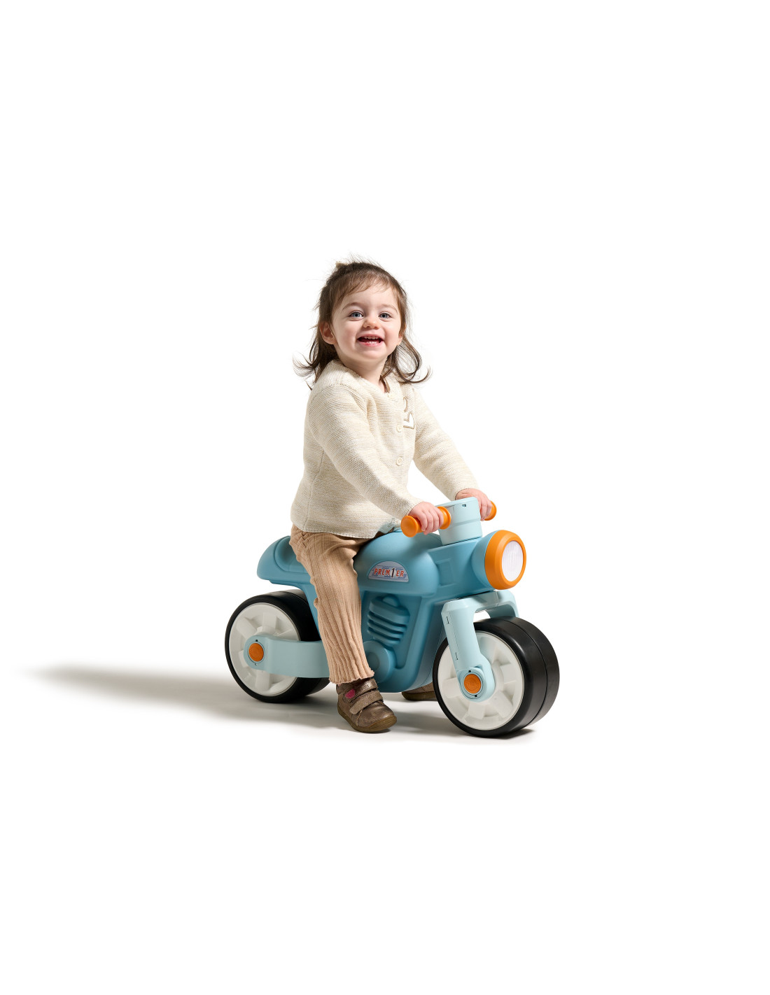 Nowa wersja uroczego motorka biegowego Falk. Wyposażony w duże kółka zapewniające dziecku niezbędną stabilność a elastomerowa powłoka motorka sprawia że jest on bardziej odporny na zarysowania czy inne uszkodzenia. Idealny do użytku wewnątrz i na zewnątrz