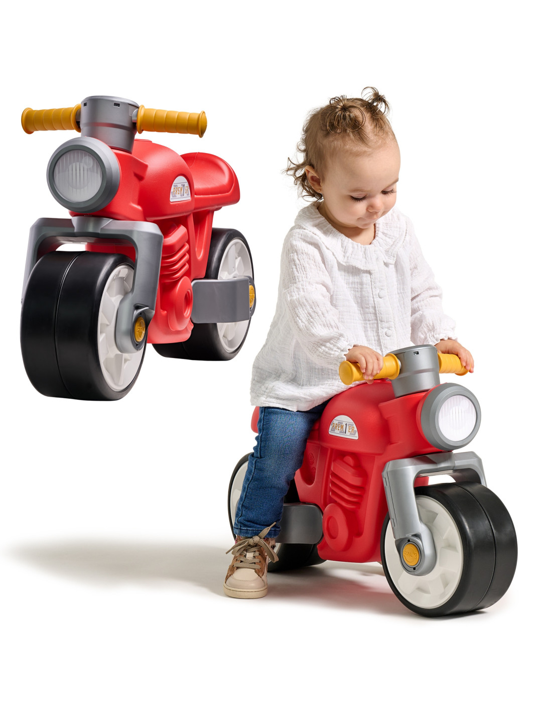 Nowa wersja uroczego motorka biegowego Falk. Wyposażony w duże kółka zapewniające dziecku niezbędną stabilność a elastomerowa powłoka motorka sprawia że jest on bardziej odporny na zarysowania czy inne uszkodzenia. Idealny do użytku wewnątrz i na zewnątrz