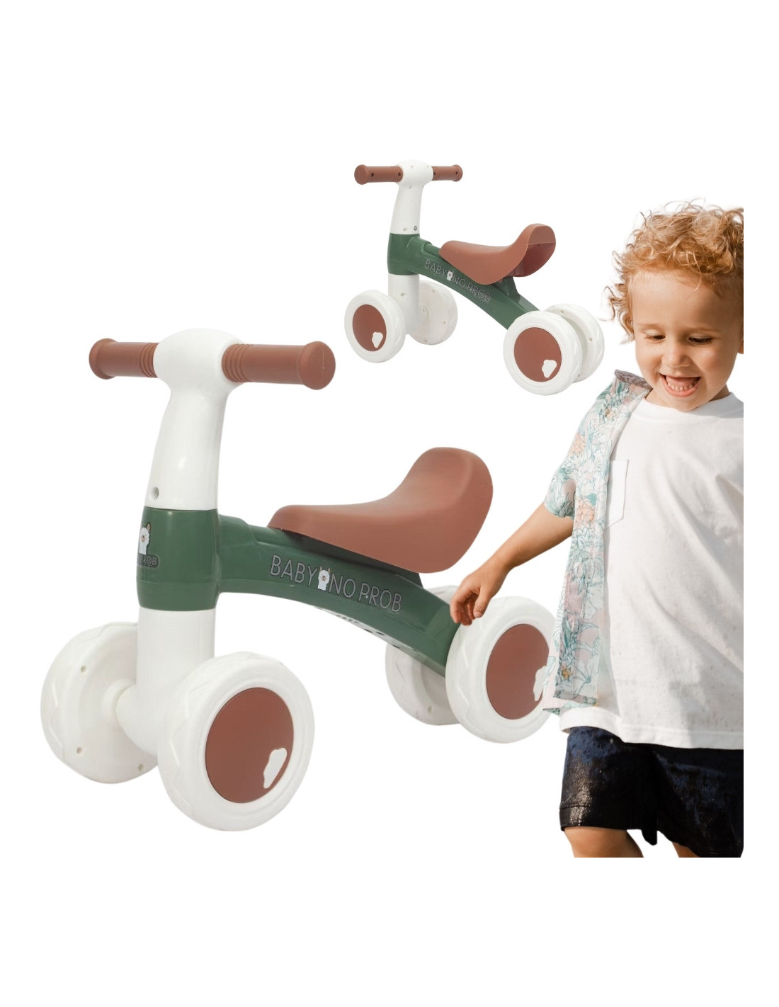 Czterokołowy zielony rowerek biegowy dla dzieci od marki Woopie to idealny wybór do pierwszej nauki jazdy i rozwijania zmysłu równowagi. Lekka, a zarazem wytrzymała konstrukcja z czterema kółkami zapewnia dziecku pełną stabilność. Dzięki ograniczeniu skrętu kierownicy do 135° i nisko położonemu środkowi ciężkości maluch nie straci równowagi i trudniej mu będzie się przewrócić. Rowerek posiada cztery szerokie, ciche koła, które nie wymagają pompowania, amortyzują wstrząsy i zapewniają doskonałą przyczepność oraz odporność na ścieranie — czyni go to idealnym do jazdy po każdej nawierzchni. Prosta, stylowa konstrukcja nie posiada żadnych ostrych krawędzi, a miękkie elementy dbają o komfort użytkowania nawet podczas długich zabaw. Proces składania nie wymaga użycia narzędzi – błyskawiczny montaż w mniej niż minutę sprawia, że rowerek jest gotowy do jazdy niemal od razu po rozpakowaniu. Jest to idealny prezent dla aktywnego malucha!