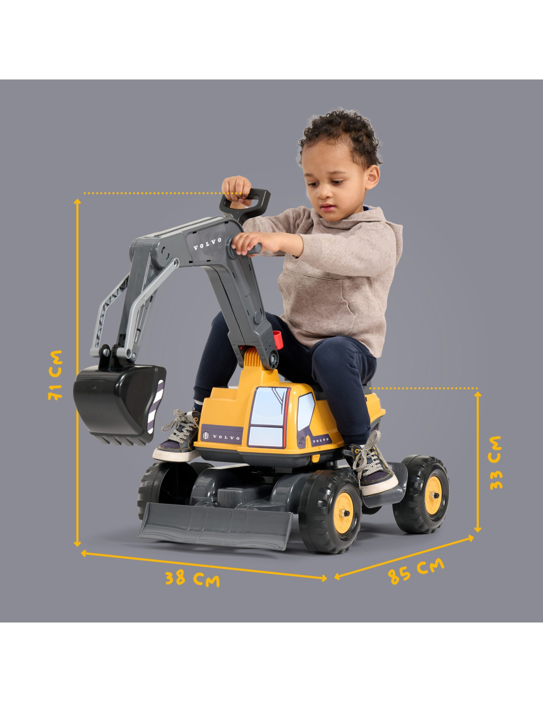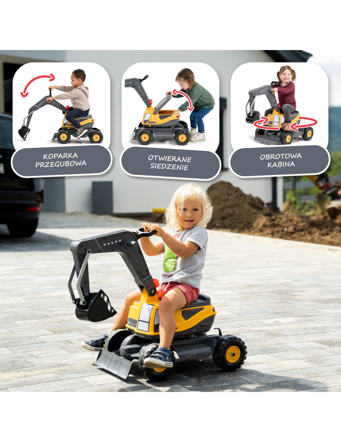 Realistyczna koparka Volvo od FALK Każdy detal został zaprojektowany z wizją i troską, a koparka wiernie przypomina prawdziwą wersję. Koparka Volvo to bardzo solidna konstrukcja i wysokiej jakości trwałe materiały. Kabina obraca się o 360° a łyżka koparki jest obrotowa. Zabawka jest bardzo zwrotna, łatwa w obsłudze - doskonale sprawdzi się w ogrodzie czy na plaży.