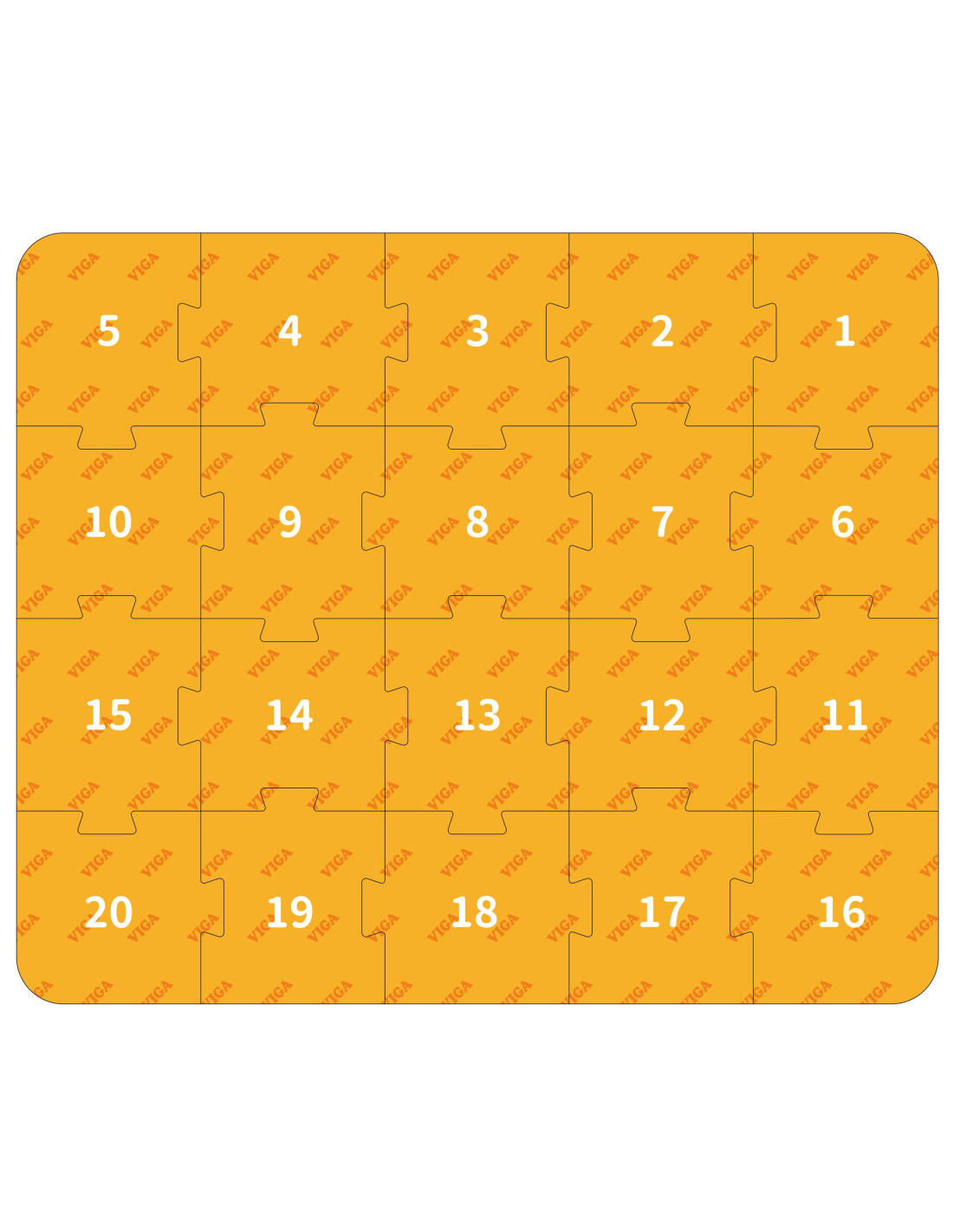 - - 20 puzzli do ułożenia planszy, na której powstanie miasteczko. Każdy z nich jest ponumerowany na odwrocie