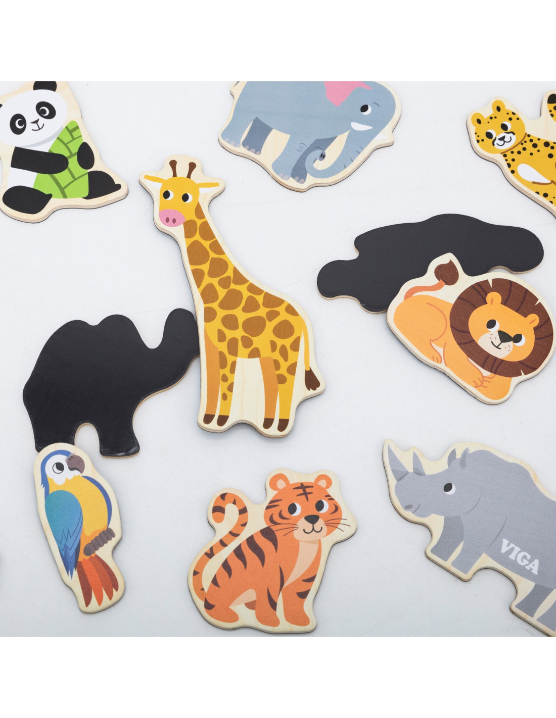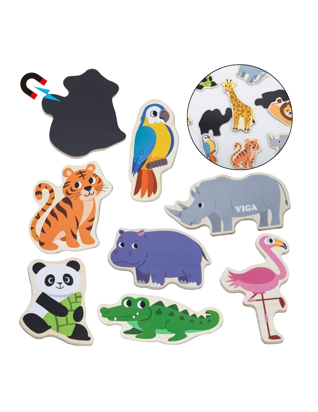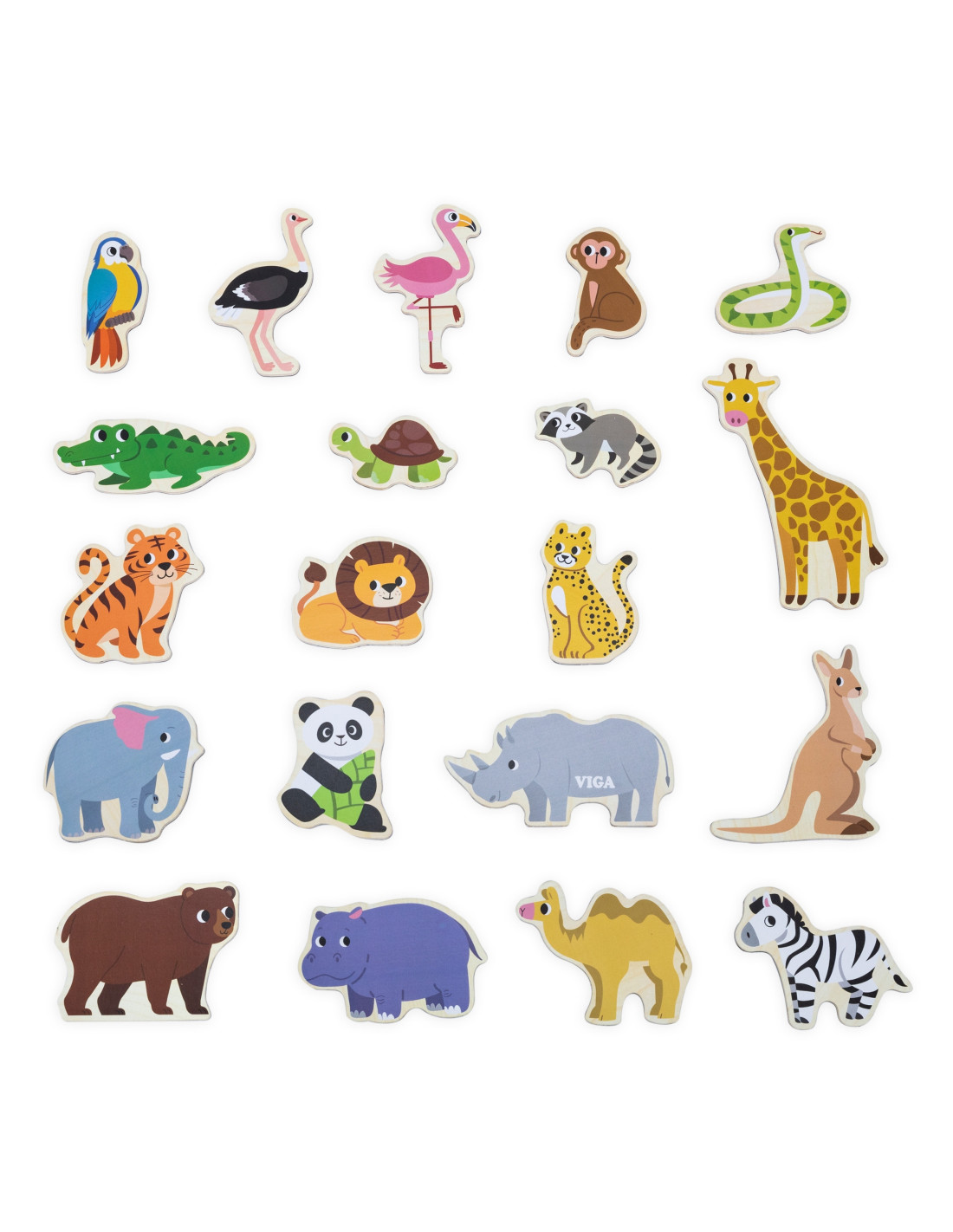 VIGA Drewniane Magnesy Dzikie Zwierzęta – Kolorowe Magnesy Edukacyjne 18M+