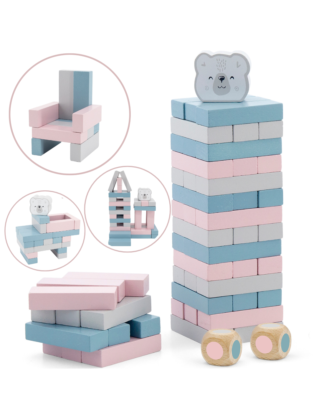 Popularna gra Układanie Wieży z serii PolarB od marki VIGA to idealna zabawa dla całej rodziny. Rozpoczynamy od ustawienia wieży startowej z drewnianych klocków na środku stołu, a następnie gracze po kolei wyjmują i kładą klocki na szczycie wieży, budując ją coraz wyższą i bardziej imponującą. Możemy również uwzględnić kolor kostki, dzięki której losujemy kolor klocka, który powinniśmy wyjąć. Wieża składa się z 56 elementów. Wykonane z wysokiej jakości drewna klocki są odporne na uszkodzenia, a nietoksyczna farba nadaje im przyjemny dla dziecka wygląd. Ta gra nie tylko rozwija zdolności manualne i koncentrację, ale także pobudza wyobraźnię i kreatywność. Idealna do dzielenia się radością i współpracy, gra Układanie Wieży zapewni wiele wspaniałych chwil zarówno dzieciom, jak i dorosłym.
