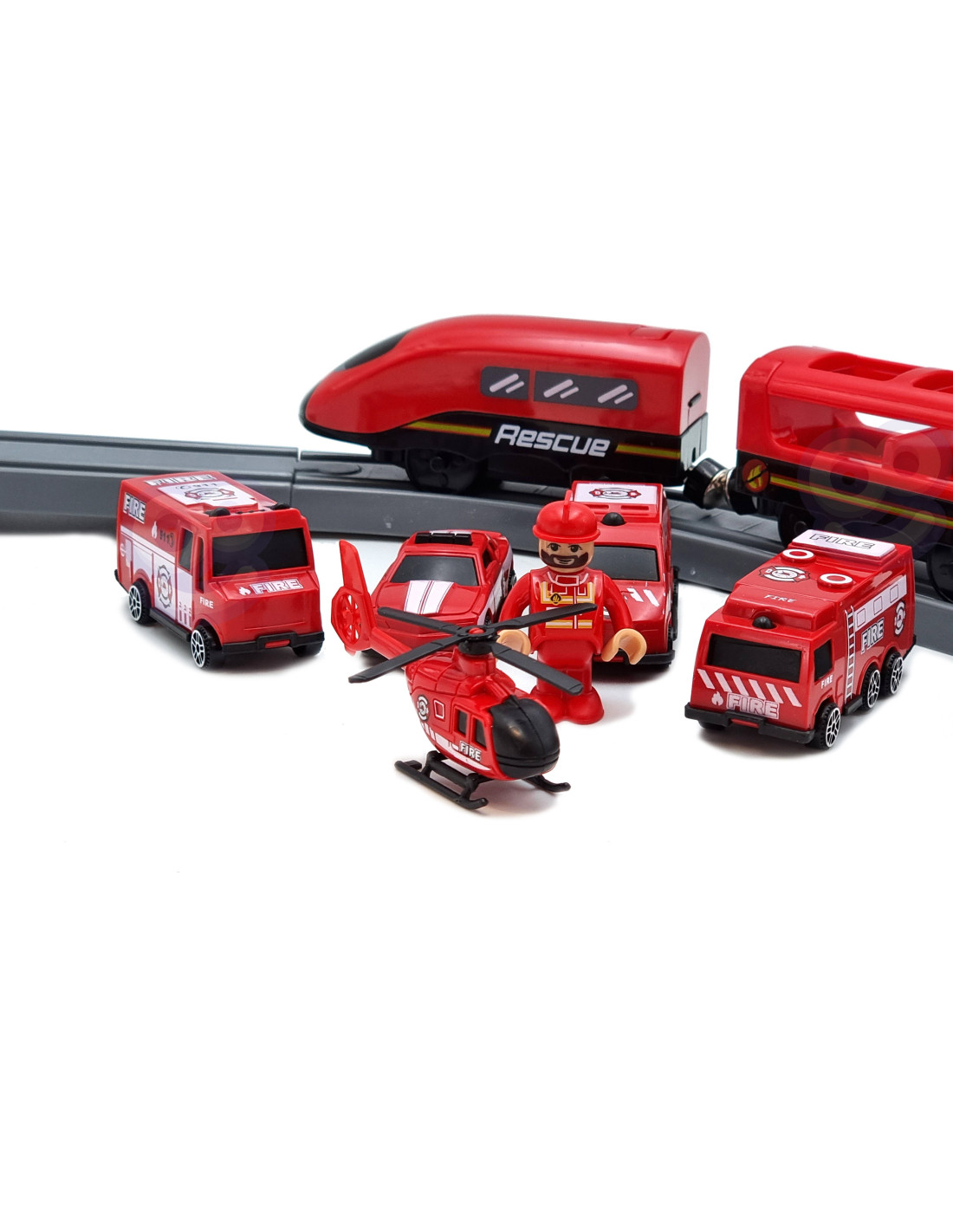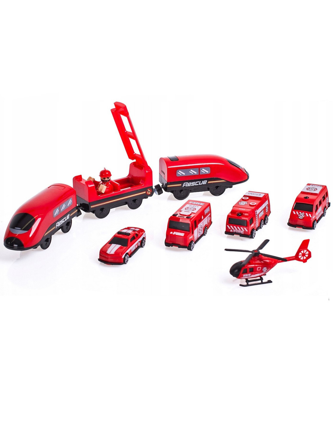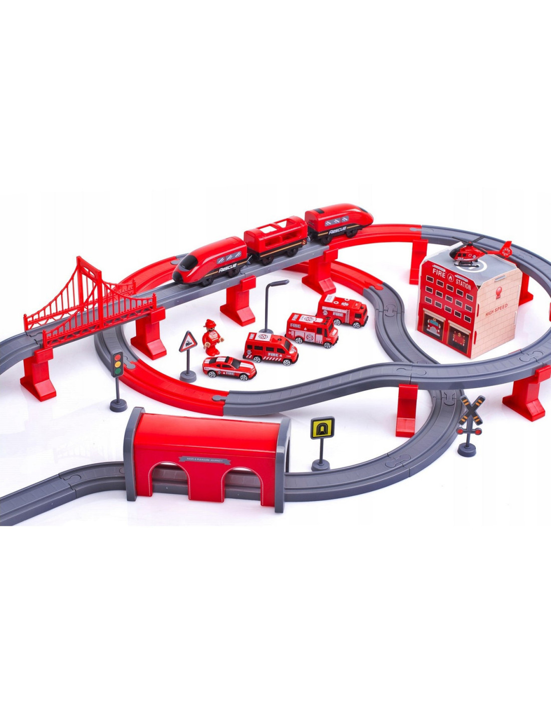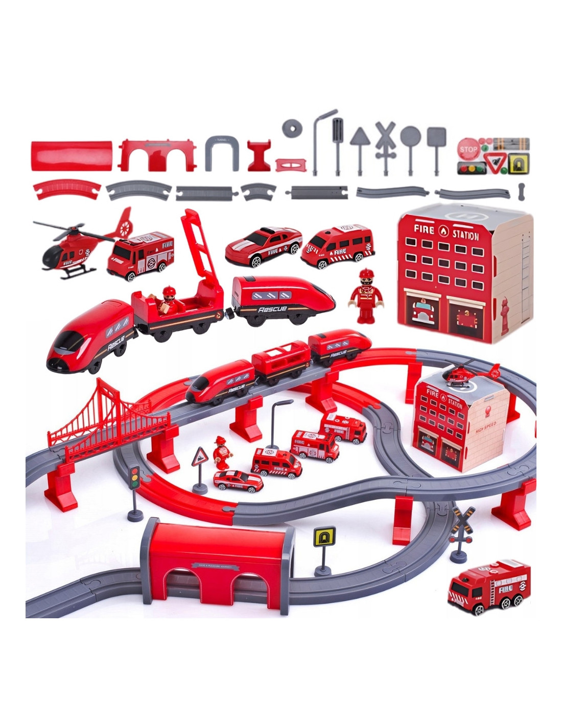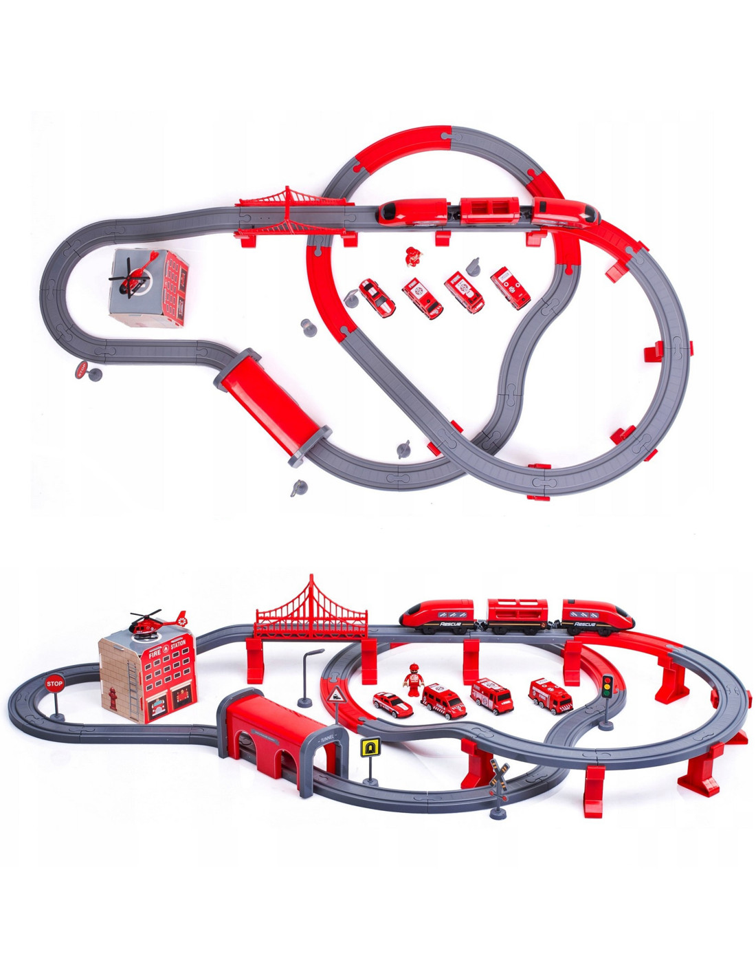 WOOPIE Kolejka Elektryczna Tor Samochodowy Straż Helikopter Auta 92 el.
