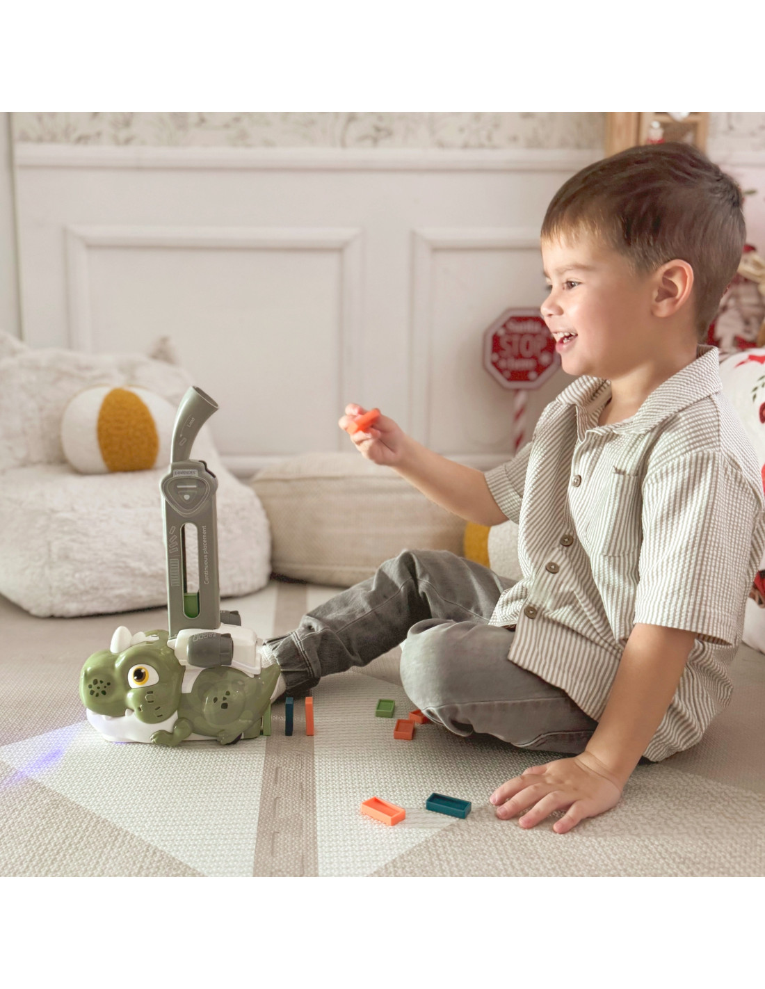 Kolorowy Dinozaur Domino od marki WOOPIE to gra, która łączy zabawkowe pociągi i domino, tworząc przyjemny i oryginalny sposób gry. Dźwięk i oświetlenie sprawia, że gra jest bardziej zabawna i atrakcyjna oraz stymuluje zainteresowanie dzieci zabawą. Aby rozpocząć grę, wystarczy wypełnić ciuchcię podajnikiem na domino, rozpocząć zabawę i cieszyć się procesem. Ponadto ciuchci towarzyszą charakterystyczne dźwięki i podświetlenie, co dodaje jeszcze większą dynamikę do gry.