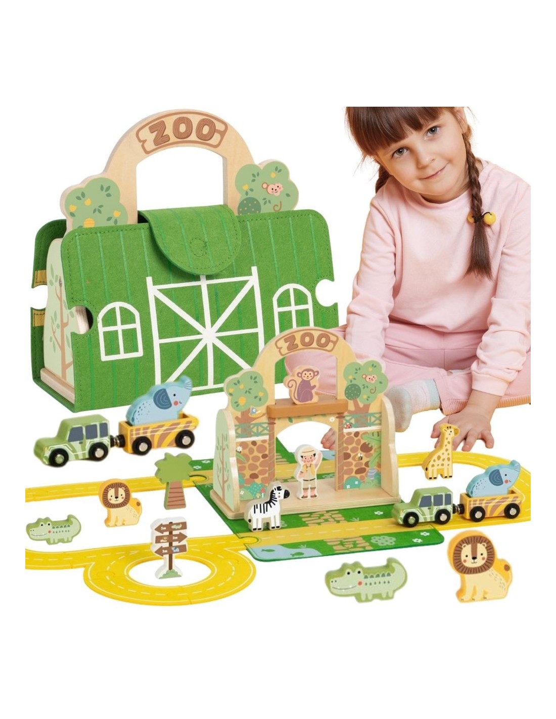 Wyobraź sobie kompletne, urocze zoo zamknięte w eleganckiej, filcowej torbie – gotowe do rozłożenia w każdym miejscu! Mini zoo marki Tooky Toy to nie tylko zabawka, to cały uniwersum przygód, które Twoje dziecko może stworzyć w domu, czy na wakacjach. Kolorowy zestaw z drewnianym wejściem w kształcie bramy zoo, kolorowe zwierzątka, pojazdy terenowe i elastyczne elementy torów zaprasza do nieskończonych możliwości zabawy. Każdy element został zaprojektowany z dbałością o szczegóły – od wesołej karetki, przez sygnalizację świetlną, aż po urocze drzewko. To miasto, które nigdy nie śpi i zawsze czeka na nowe historie!