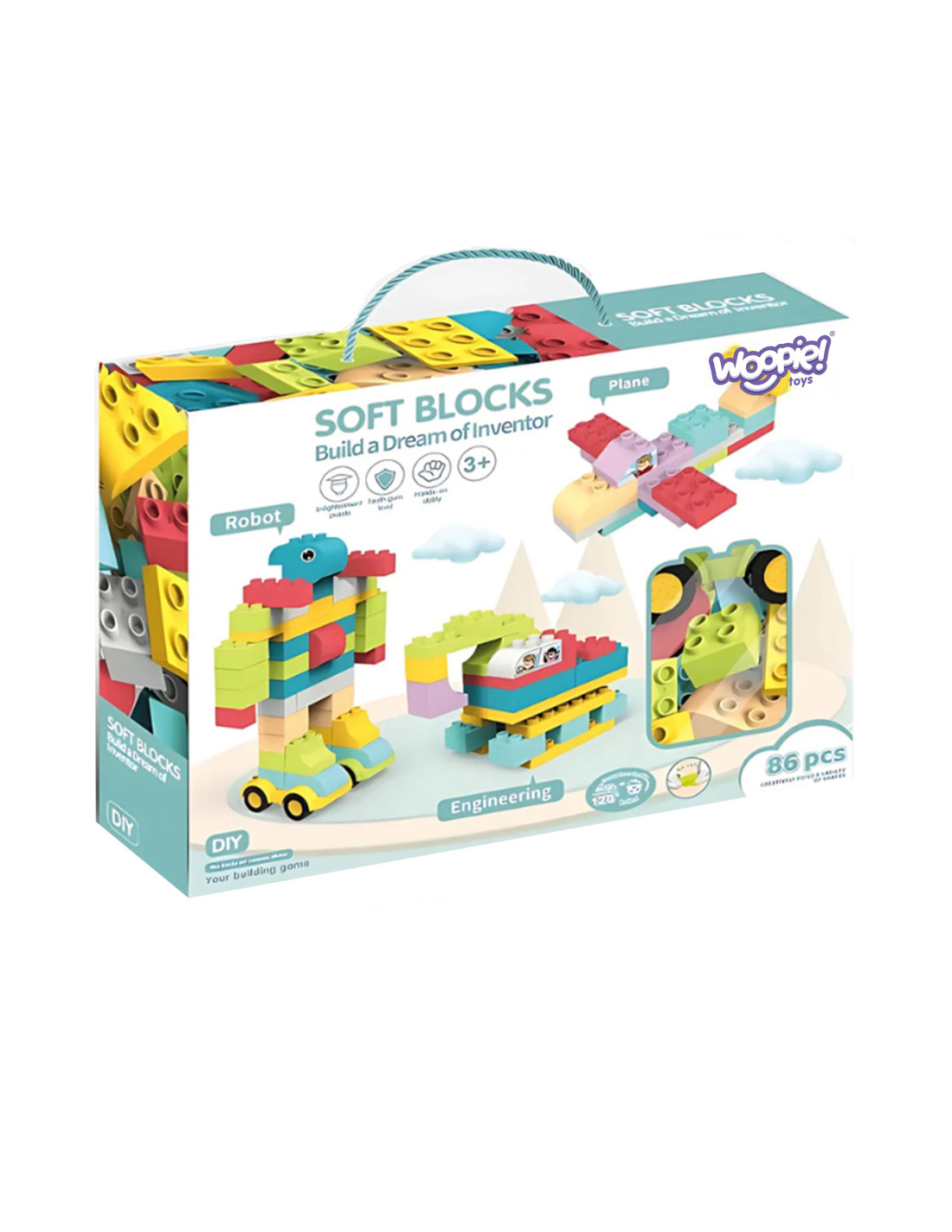 Klocki konstrukcyjne 3D od marki WOOPIE zwrócą uwagę i zafascynują Twoje dziecko. Klocki w bardzo łatwy sposób łączą się ze sobą, można z nich stworzyć wspaniałe konstrukcje 3D. Zestaw zawiera 86 elementów Samo budowanie konstrukcji rozwinie u dziecka logiczne myślenie, wyobraźnie, kreatywność oraz pomoże mu się skoncentrować podczas tworzenia. Przez układanie klocków dziecko poznaje kształty i kolory oraz ćwiczy zdolności manualne tzw. motorykę małą.