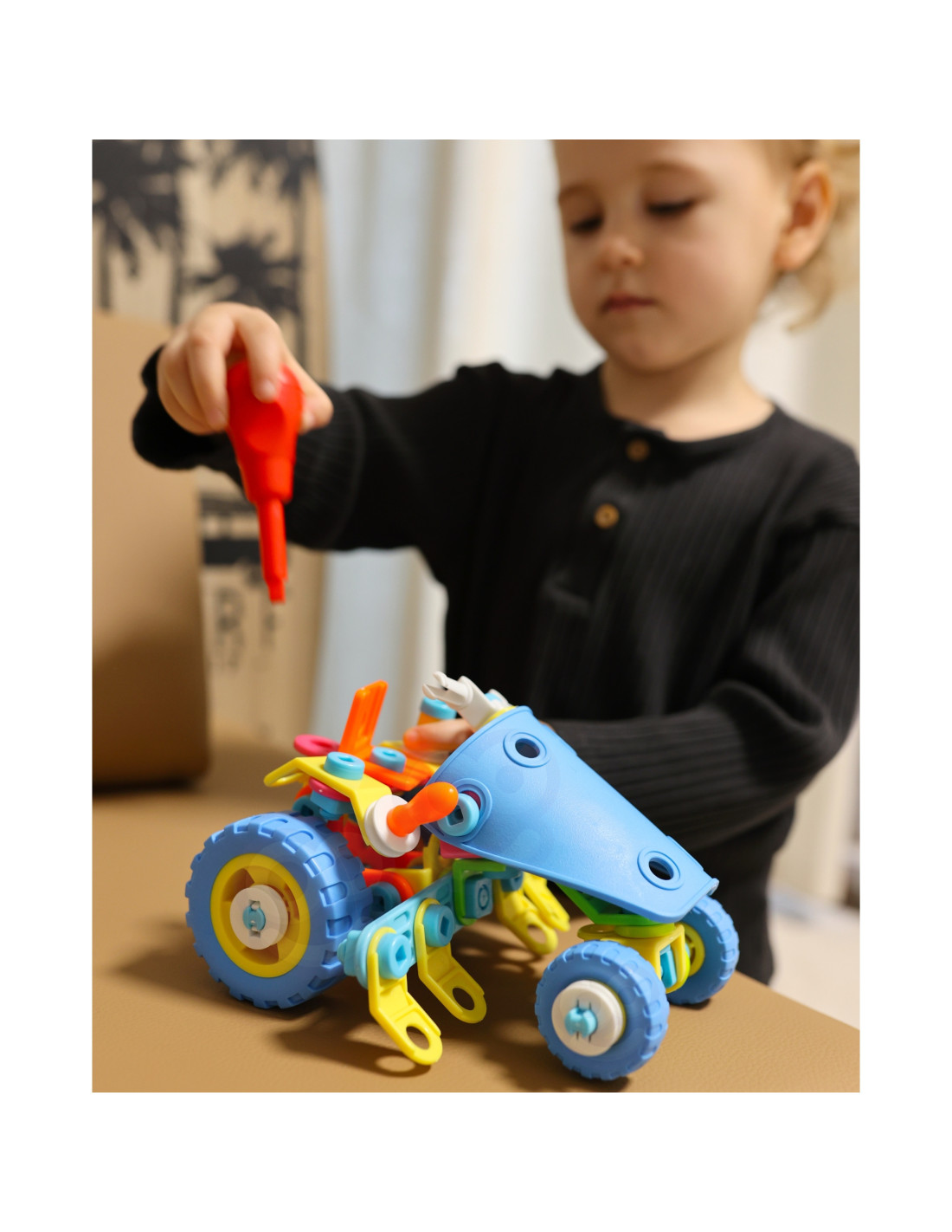 Zestaw Konstrukcyjny Pojazdy 6w1 od firmy WOOPIE to świetny pomysł na twórczą zabawę - skutecznie zajmują na wiele długich godzin i wyzwalają absolutny wulkan kreatywnych pomysłów! Rozbudź wyobraźnię i zdolności manualne swojego dziecka dzięki wyjątkowym klockom konstrukcyjnym! Zestaw zawiera 118 elementów, które pozwolą na stworzenie różnych pojazdów, w tym traktora, koparki czy gokartów . Niezależnie od płci, ta zabawka jest doskonała zarówno dla chłopców, jak i dziewczynek. Rozwijająca kreatywność i zdolności manualne, pozwala każdemu dziecku odkrywać świat budownictwa i projektowania w sposób, który dostarcza mnóstwo satysfakcji i radości.