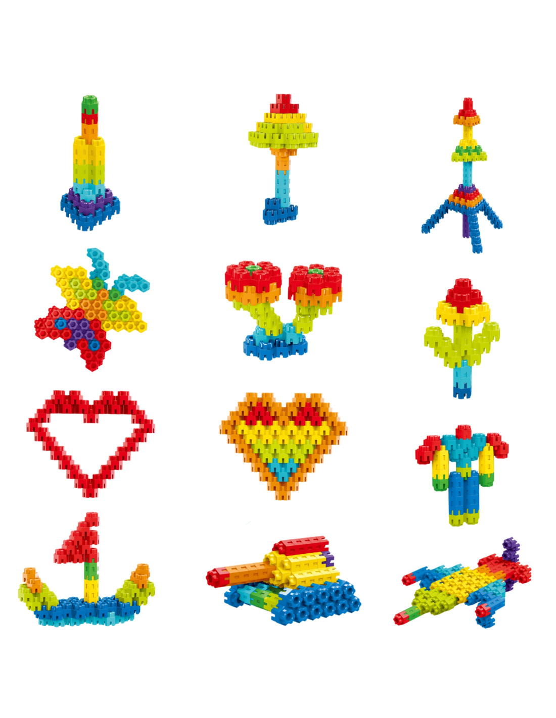 Zestaw konstrukcyjny stworzony z myślą o rozwijaniu dziecięcej wyobraźni i zdolności manualnych. Składa się z 300 kolorowych elementów, które umożliwiają budowę fantazyjnych kształtów: od robotów, kwiatów i motyli, aż po pojazdy, serca i budowle 3D. Elementy łatwo się łączą, dzięki czemu zabawa jest intuicyjna, a tworzenie skomplikowanych konstrukcji – satysfakcjonujące i angażujące. To doskonała forma nauki przez zabawę, wspierająca rozwój logicznego myślenia, cierpliwości i zdolności koordynacyjnych.