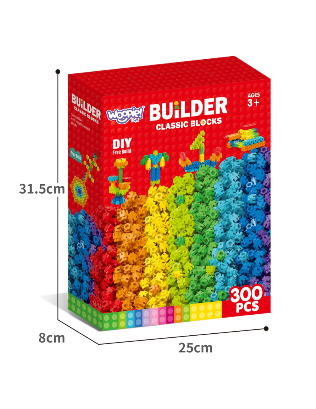 ✔️ 300 elementów w różnych kolorach – idealne do tworzenia nieograniczonej liczby konstrukcji