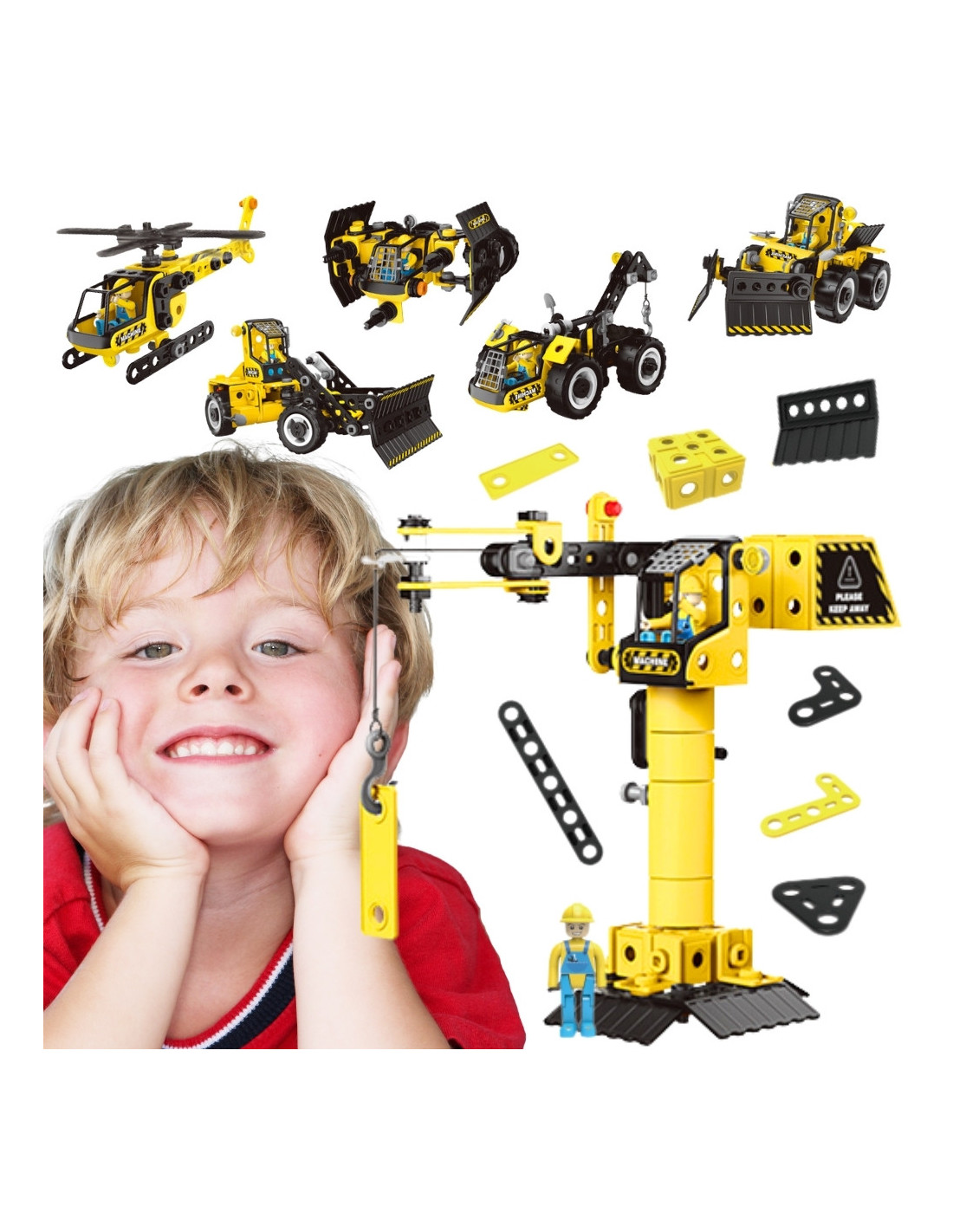 Odkryj fascynujący świat budownictwa z zestawem Konstrukcyjnym Pojazdy Budowlane STEAM marki Woopie. Ten wyjątkowy zestaw klocków konstrukcyjnych pozwala dzieciom zbudować aż 6 różnych modeli pojazdów budowlanych z jednego zestawu części. Każdy model reprezentuje prawdziwe maszyny używane w kamieniołomach i na placach budowy - od potężnych koparek, przez dźwigi budowlane, aż po śmigłowce ratownicze. Żółto-czarna kolorystyka nadaje zabawce profesjonalnego, przemysłowego charakteru, a liczne ruchome elementy zapewniają realistyczne doświadczenie zabawy.