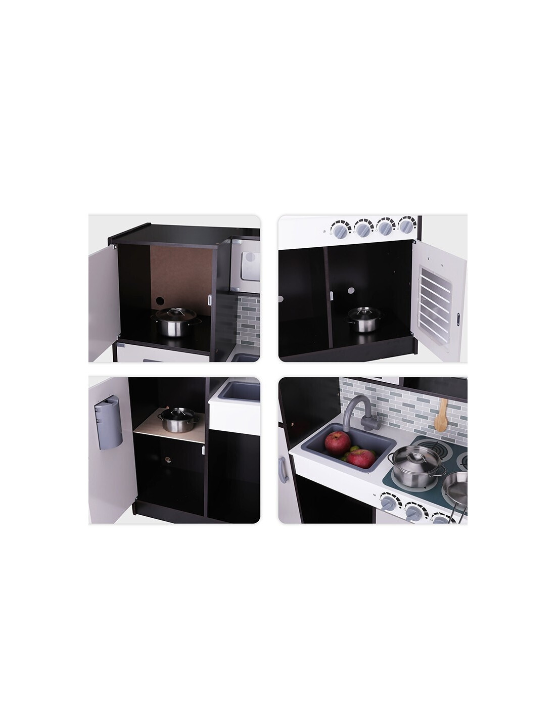 Drewniana konstrukcja kuchni gwarantuje trwałość i estetykę, a dodatkowo zapewnia realistyczne wrażenia podczas zabawy.
