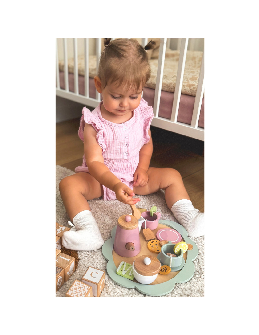 Zestaw Popołudniowa Herbatka od Tooky Toy nie tylko prezentuje się niezwykle atrakcyjnie, ale również zachwyca mnóstwem drobiazgów i detali, które sprawiają, że trudno mu się oprzeć. Serwis do herbaty to świetny pomysł na długie godziny zabawy dla Twojego dziecka. Piękna pastelowa kolorystyka zachęci dziecko do zabawy.