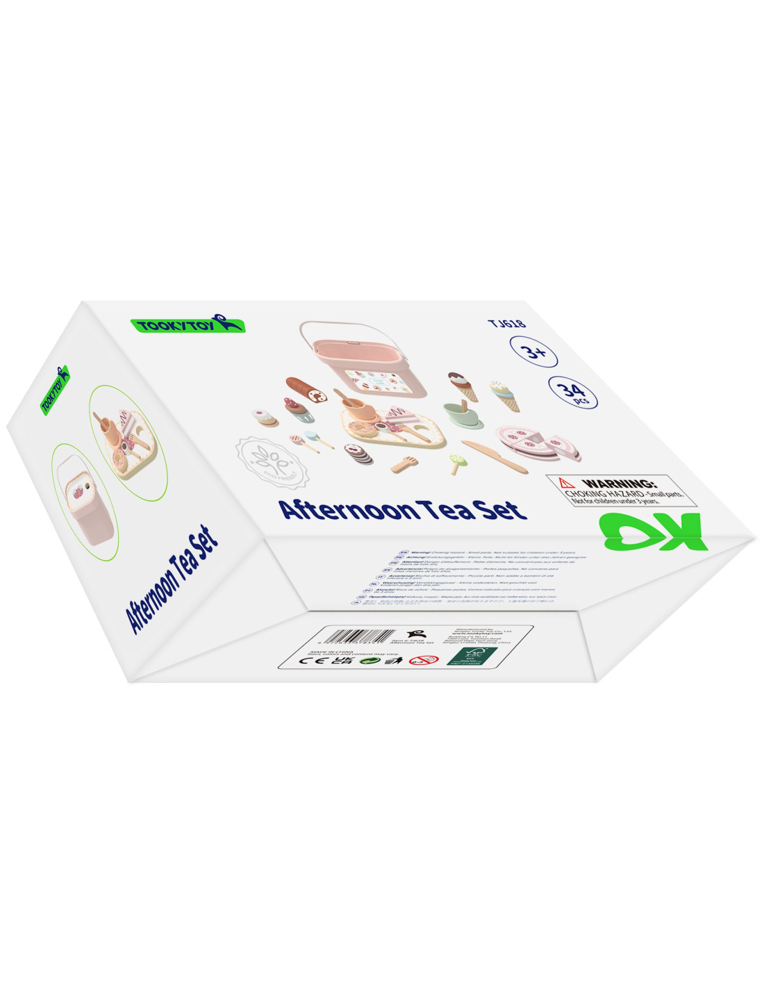 Sweet Cake to drewniany zestaw słodkości od Tooky Toy, doskonały do kreatywnej zabawy podczas przyjęć. Zawartość tego plastikowego pudełka obejmuje piękny tort i roladę, które można kroić, dwie urocze filiżanki na herbatę, ciastka, pączki, lody, lizaki oraz elegancka tacę do podawania tych pyszności. To kompleksowe wyposażenia pozwala na zorganizowanie uroczystego przyjęcia urodzinowego lub innego wyjątkowego spotkania z przyjaciółmi. Zabawa ze Sweet Cake nie tylko rozwija wyobraźnię dziecka, ale także wspiera rozwój umiejętności manualnych. Używając tego zestawu, maluchy mogą wcielać się w rolę małych cukierników cieszyć się tworzeniem niezapomnianych chwil podczas wspólnych spotkań.