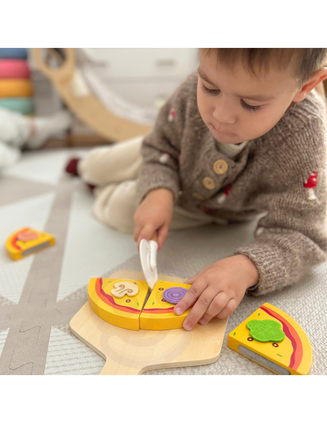 - Różnorodne pizze - Zabawka zachęca do kreatywności, gdy Twoje dziecko układa dodatki i projektuje własne, niepowtarzalne pizze. Ten interaktywny aspekt zabawy rozwija umiejętności motoryczne i kulinarne opowiadanie historii.