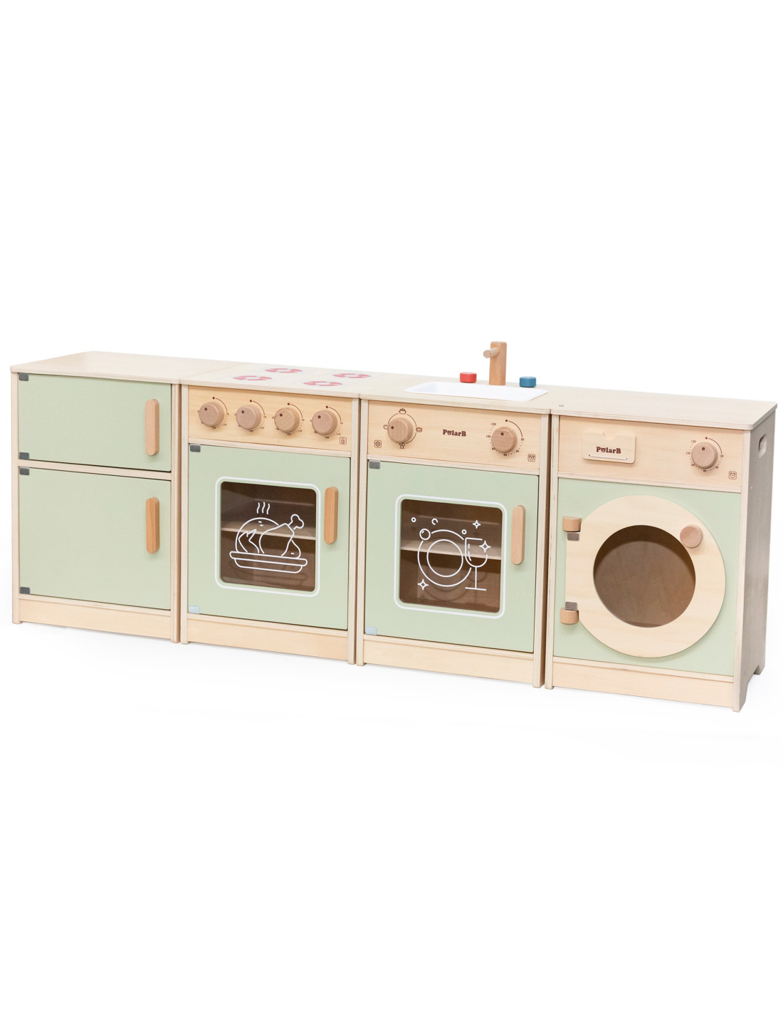 VIGA PolarB Drewniany Zestaw Kuchenny XL Pralka Kuchenka Zmywarka - Zielony