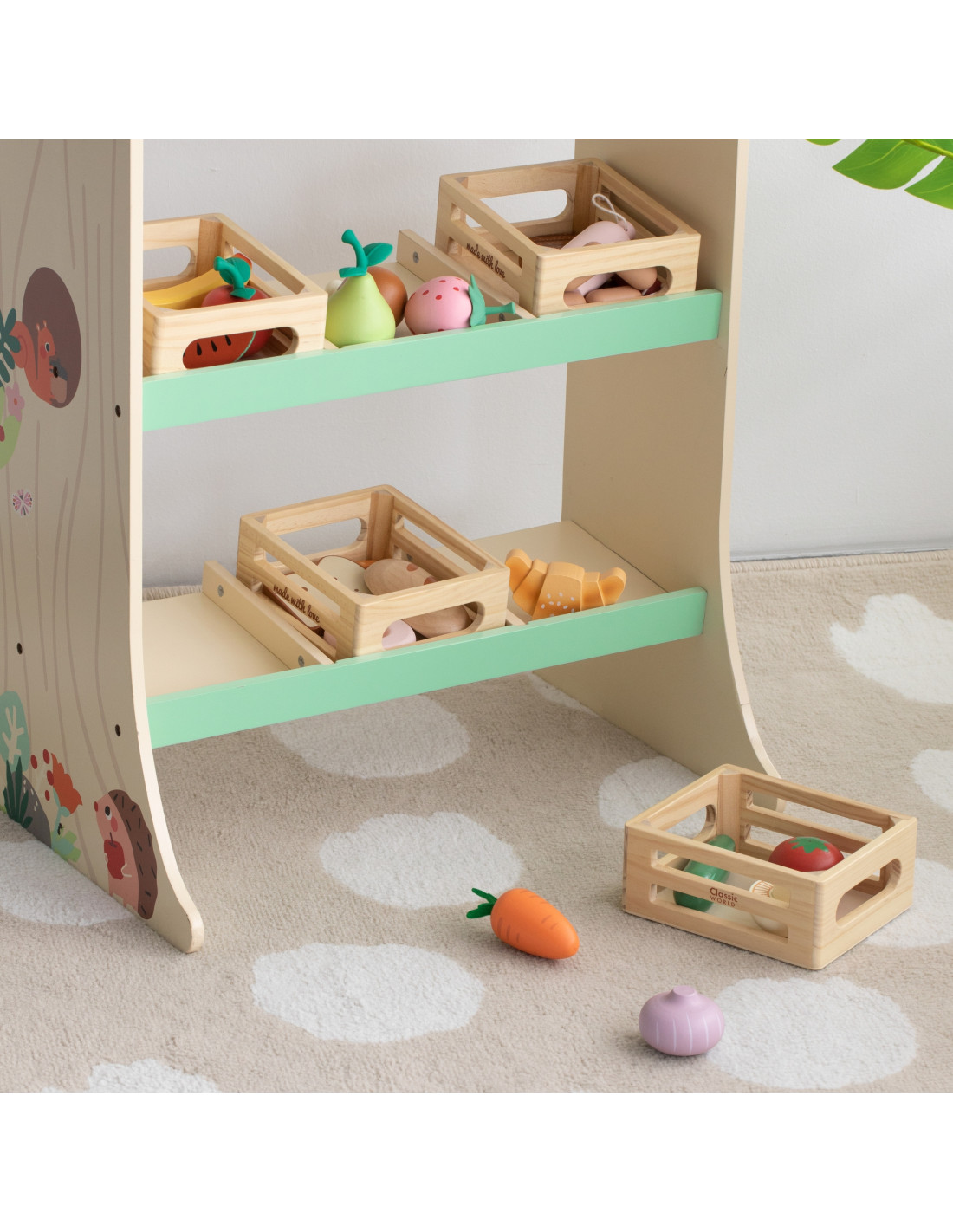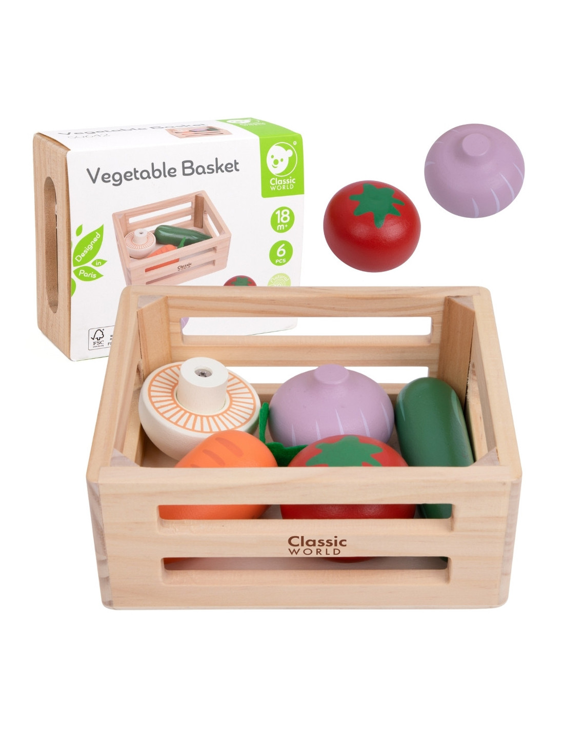 Koszyk z warzywami od Classic World to zestaw dla dzieci, które uwielbiają kreatywną zabawę w kuchnię lub sklep. Drewniane elementy odwzorowujące różne rodzaje warzyw pozwalają na swobodne odgrywanie ról, rozwijając wyobraźnię i umiejętności społeczne. Każdy składnik zestawu został wykonany z wysokiej jakości drewna. Zestaw świetnie sprawdzi się zarówno podczas samodzielnej zabawy, jak i wspólnego tworzenia z rówieśnikami lub dorosłymi.