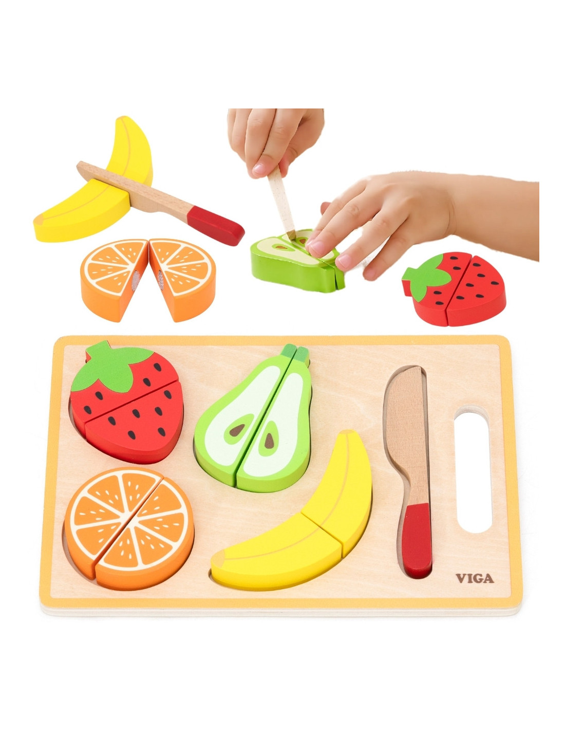 Ta wyjątkowa drewniana układanka z motywem owoców to idealna zabawka do zabawy w gotowanie i naśladowania dorosłych. Owoce połączone są za pomocą rzepów, które realistycznie "przecinają się" załączonym drewnianym nożykiem, co daje mnóstwo radości. Układanka doskonale uzupełnia zestawy kuchenne i rozwija sprawność motoryczną ręki oraz koordynację wzrokowo-ruchową. To fantastyczna zabawka, która angażuje dziecko i zachęca do nauki przez działanie.