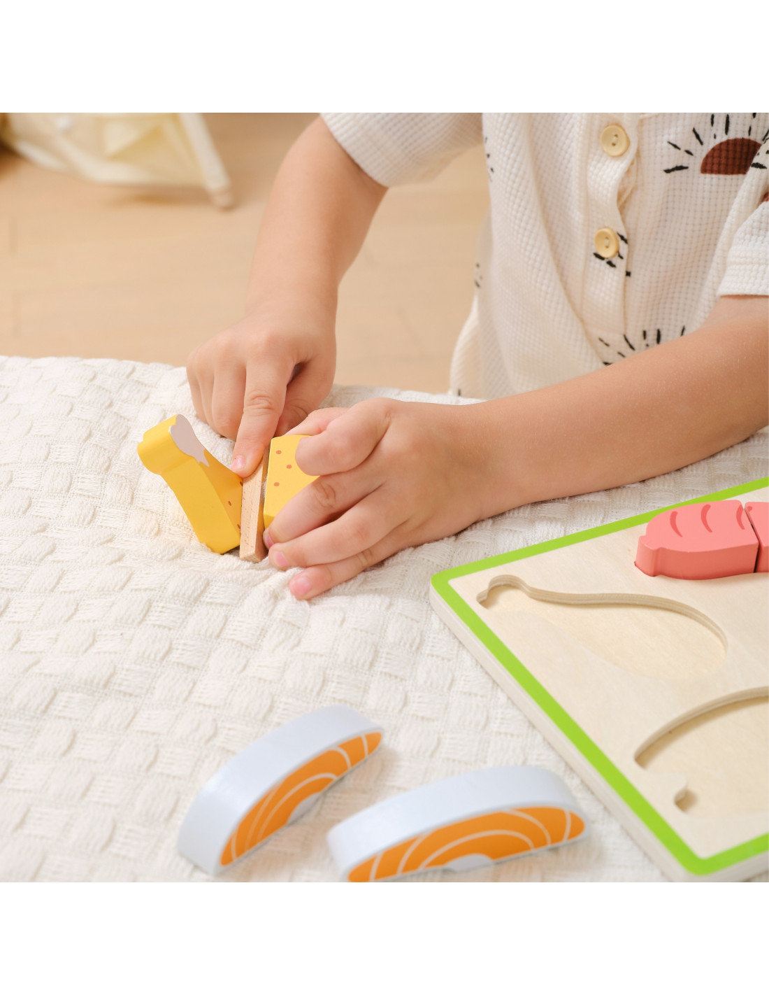 Poznaj zestaw, który sprawi, że Twoje dziecko poczuje się jak prawdziwy mały kucharz! Krojenie Mięsa to świetna zabawa w przygotowywanie posiłków, która doskonale uzupełnia inne zestawy kuchenne. Elementy łączone na rzep można kroić bez końca, a następnie z powrotem składać w całość. Dzięki temu maluch rozwija sprawność rąk, uczy się logicznego myślenia i odgrywa kreatywne scenki kulinarne. To doskonała zabawka edukacyjna już od 18. miesiąca życia!