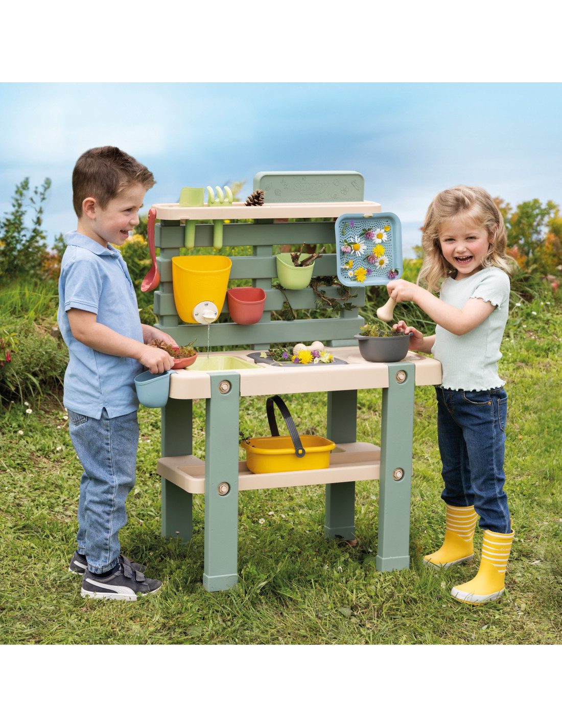 Smoby Life Kuchnia do zabawy wodą i piaskiem to pierwsza tego typu zabawka ogrodowa, która łączy w sobie radość zabawy wodą i piaskiem. Dzięki niej dzieci mogą tworzyć własne kuchenne historie na świeżym powietrzu, eksperymentując z wodą, piaskiem i naturalnymi materiałami znalezionymi w ogrodzie. To doskonały sposób na spędzenie czasu na świeżym powietrzu, rozwijając kreatywność, umiejętności manualne i społeczne.