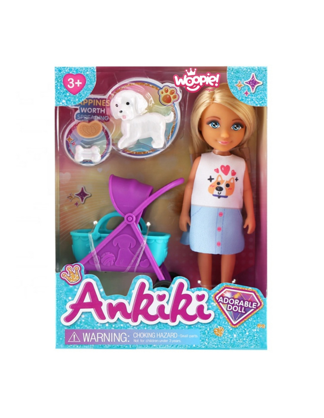 Przedstawiamy uroczą laleczkę Ankiki, od marki WOOPIE! która zapewni mnóstwo radosnej zabawy w odgrywanie ról! Ten wspaniały zestaw inspiruje do opieki nad zwierzętami i odgrywania scenek, dzięki dołączonemu białemu pieskowi i akcesoriom. Lalka ma modny, letni strój i własny wózek/nosidełko, idealne na wspólne spacery i przygody. Komplet zawiera również smakołyki dla pupila, co dodatkowo urealnia zabawę w opiekę. To doskonały prezent dla dzieci powyżej 3 lat, rozwijający empatię i wyobraźnię.
