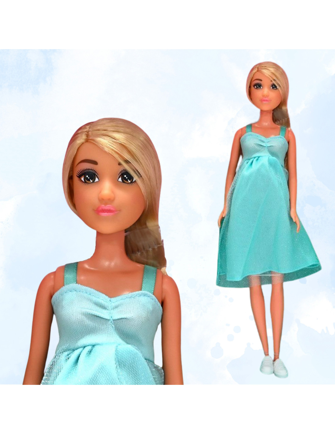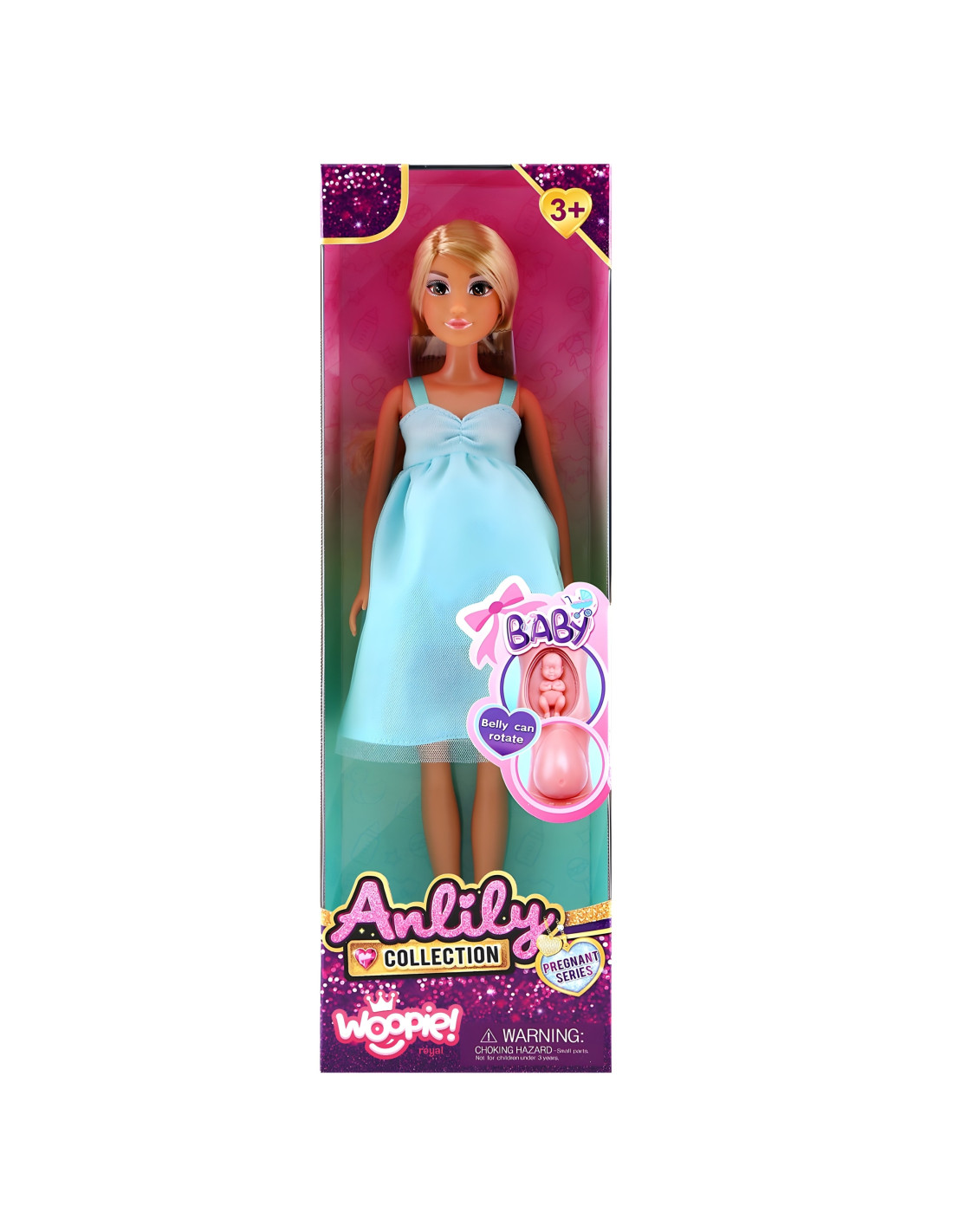 Lalka przedstawiająca przyszłą mamę od marki Woopie to niezwykła propozycja dla dzieci, które interesują się tematyką rodziny, macierzyństwa i opieki nad najmłodszymi. Ta wyjątkowa lalka została zaprojektowana z myślą o realistycznym odwzorowaniu ciąży i narodzin dziecka. Jej największym atutem jest obracany brzuch, z którego można wyjąć niemowlę – to funkcja, która umożliwia dziecku symulowanie scenek porodu, opieki nad maluszkiem oraz rodzinnych momentów tuż po narodzinach. Lalka ubrana jest w delikatną, błękitną sukienkę, która nadaje jej eleganckiego wyglądu. Jej blond włosy i delikatne rysy twarzy sprawiają, że z łatwością budzi sympatię dziecka i staje się ulubioną towarzyszką zabaw. Dzięki prostemu mechanizmowi wyjmowania dzidziusia, zabawka jest łatwa w obsłudze nawet dla młodszych dzieci. Ta lalka to nie tylko źródło świetnej zabawy, ale również narzędzie wspierające rozwój emocjonalny dziecka. Uczy empatii, zrozumienia roli mamy, a także pomaga w rozmowach o narodzinach, więziach rodzinnych i miłości. Idealnie sprawdzi się zarówno podczas samodzielnej zabawy, jak i wspólnie z rówieśnikami czy rodzicami.