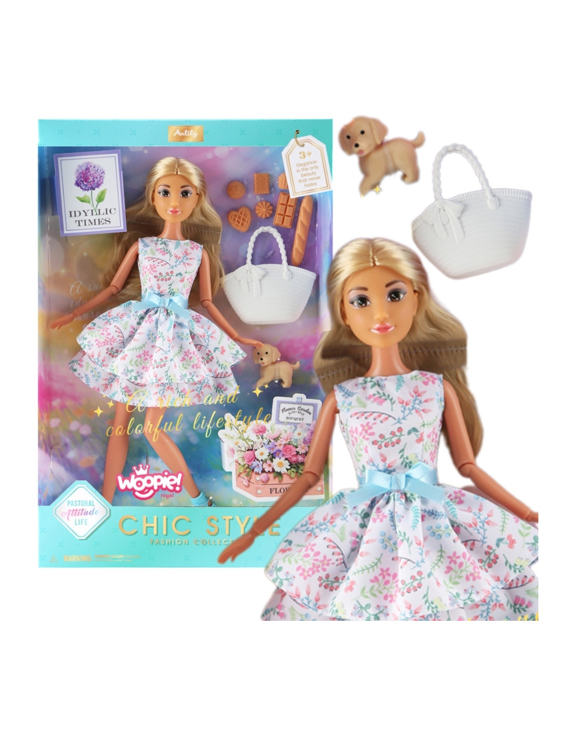 WOOPIE ROYAL Lalka Lily 30 cm Wiosenna Suknia Akcesoria Piesek Piknik