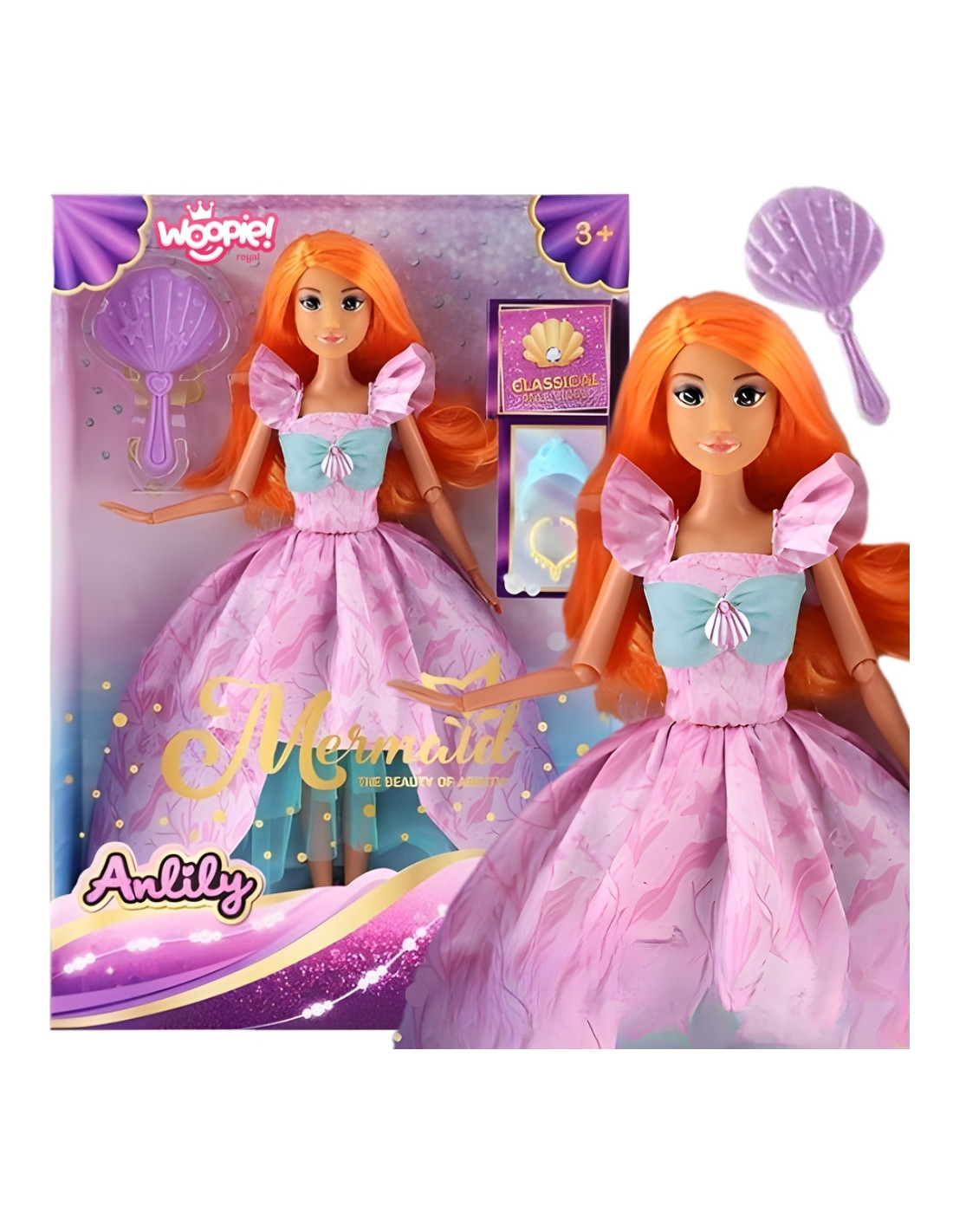Poznaj wyjątkową Lalkę Księżniczkę Lily od Woopie Royal – prawdziwą królową bajkowego świata! Ubrana w błyszczącą, pastelową suknię i z długimi, różowymi włosami, które można czesać i stylizować, Lily zachwyca elegancją i wdziękiem. W zestawie znajdziesz fioletowy grzebień w kształcie muszli oraz pierścionek z klejnotem, które podkreślają jej królewski charakter. Ta lalka to nie tylko piękna zabawka, ale też sposób na rozwój wyobraźni i kreatywności dziecka. Idealna na prezent dla małej miłośniczki bajek i księżniczek!