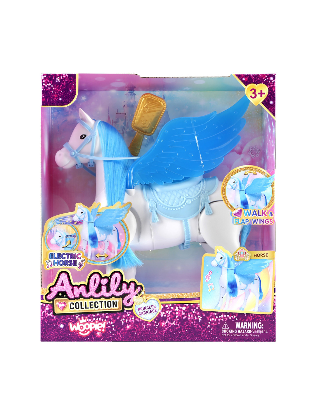 Odkryj niezwykłego Interaktywny Konik Lily, który przeniesie Twoje dziecko do świata magii i fantazji! Ten piękny, biały rumak z turkusową grzywą i skrzydłami to idealny towarzysz każdej zabawy. Dzięki funkcji elektrycznej koń porusza się samodzielnie, dodając emocji i realizmu do bajkowych historii. W zestawie znajdziesz także złotą szczotkę do czesania jego lśniącej grzywy i ogona. To idealny prezent dla małej księżniczki, który zapewni godziny kreatywnej i wciągającej zabawy!