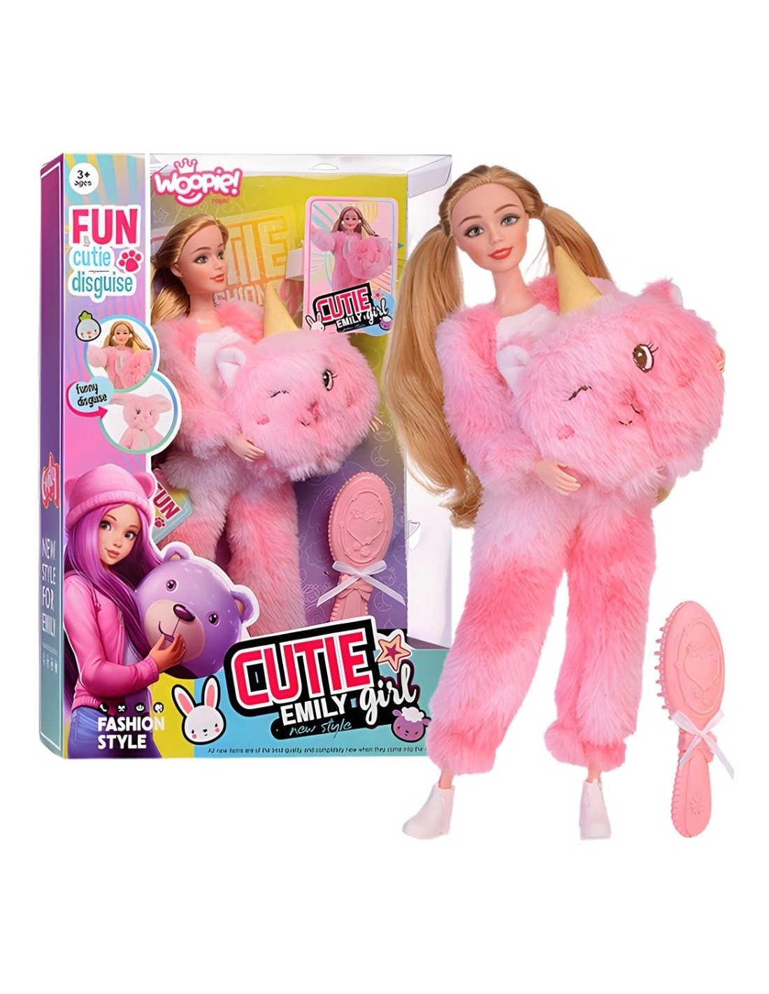 Przywitaj się z uroczą lalką Emi od marki WOOPIE ROYAL, która zachwyca swoim słodkim, różowym strojem! Miękki, futrzany kombinezon z kapturem w kształcie zwierzaka sprawia, że lalka wygląda niezwykle przytulnie i modnie. To idealna towarzyszka do zabawy, przytulania i tworzenia wyjątkowych historii! Dzięki wysokiej jakości wykonania i pięknym detalom, Emily stanie się ulubioną lalką każdej dziewczynki. Z tą lalką zabawa nigdy się nie kończy – to prawdziwa moda i uroczy styl w jednym!