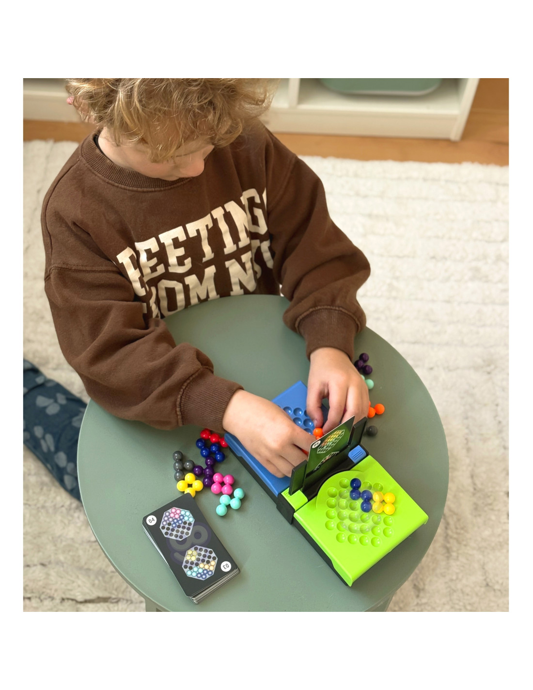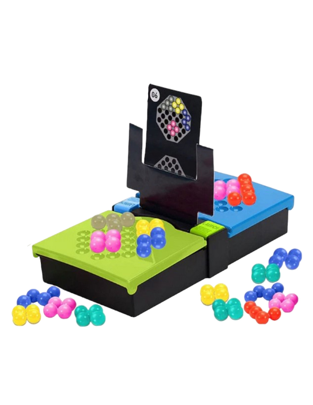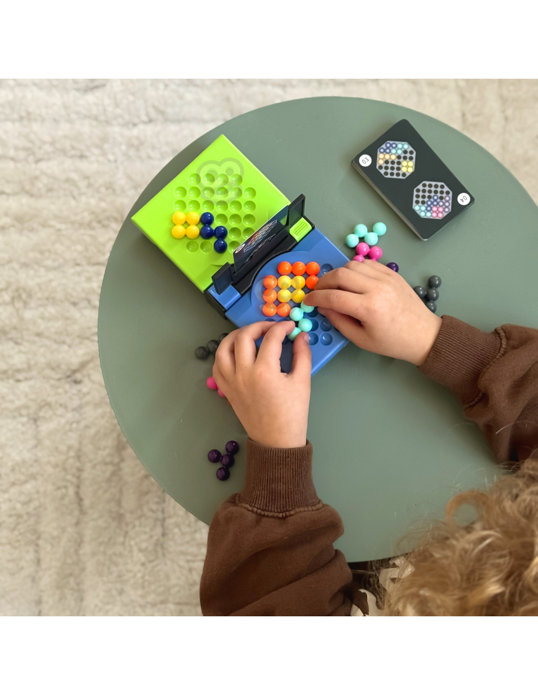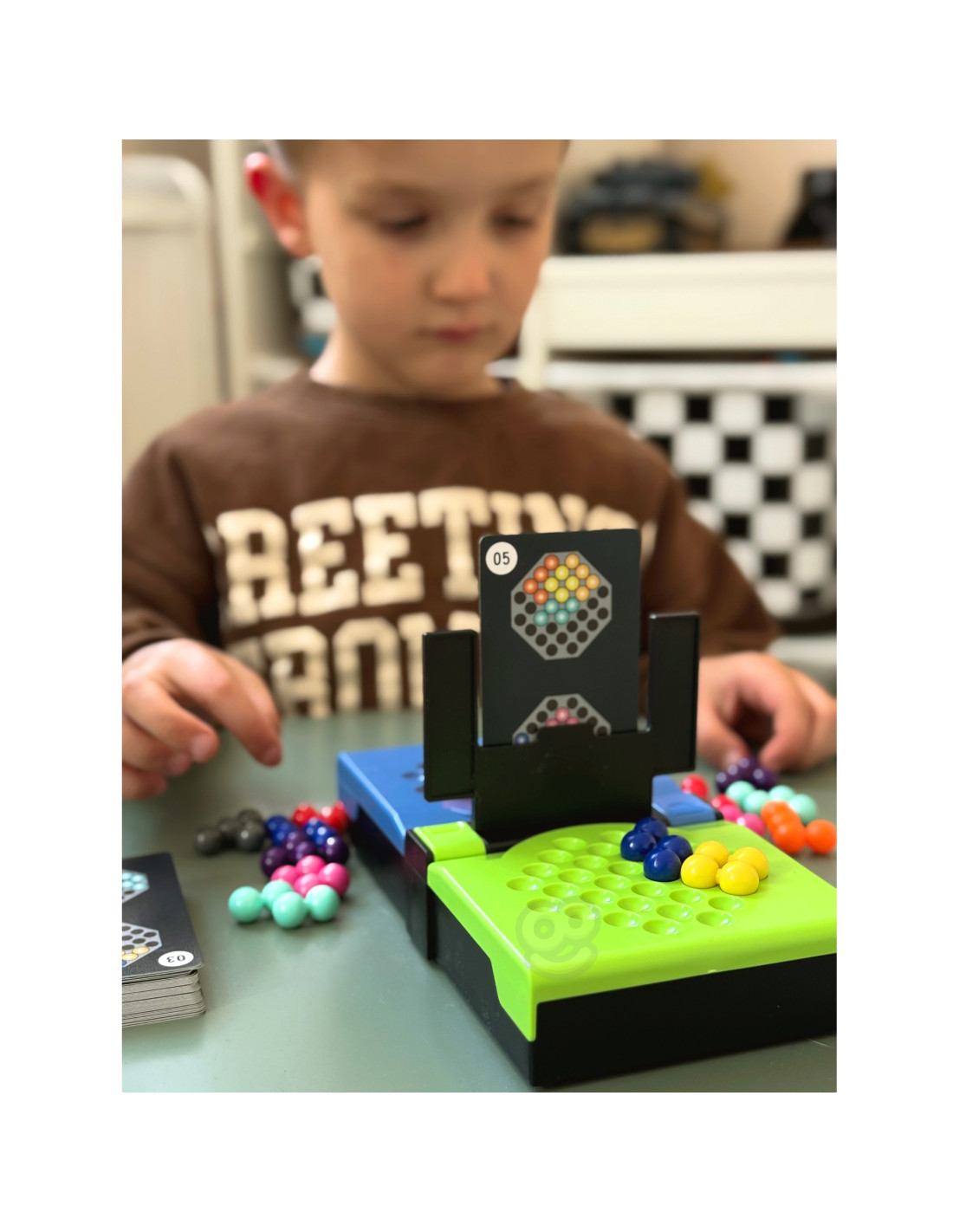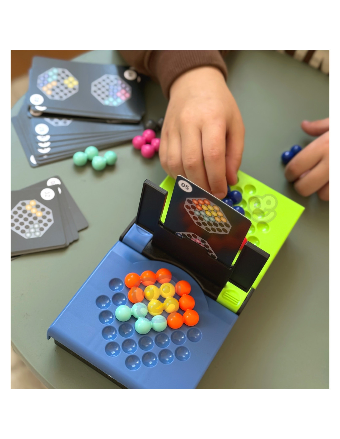 - Z puli swoich kolorowych kulek, gracze jak najszybciej starają się ułożyć wzór pokazany na karcie przed nimi