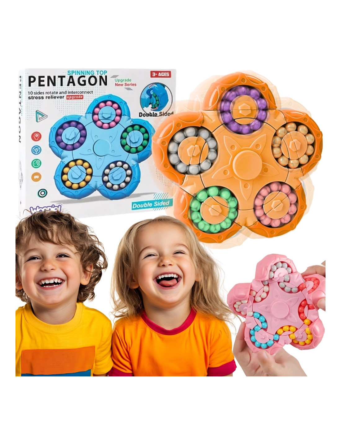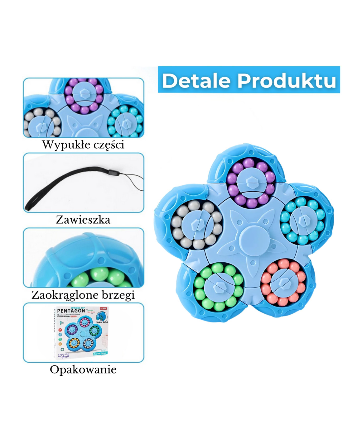 Magic Beans Puzzle Pentagon od marki Woopie to niezwykła zabawka logiczna łącząca funkcję antystresowej układanki i rozwijającej gry edukacyjnej. Dzięki podwójnym stronom i kolorowym kulkom dzieci mogą obracać i przesuwać elementy w różne strony, tworząc własne kombinacje. Zabawka wspiera koncentrację, logiczne myślenie i kreatywność, a jednocześnie działa relaksująco.