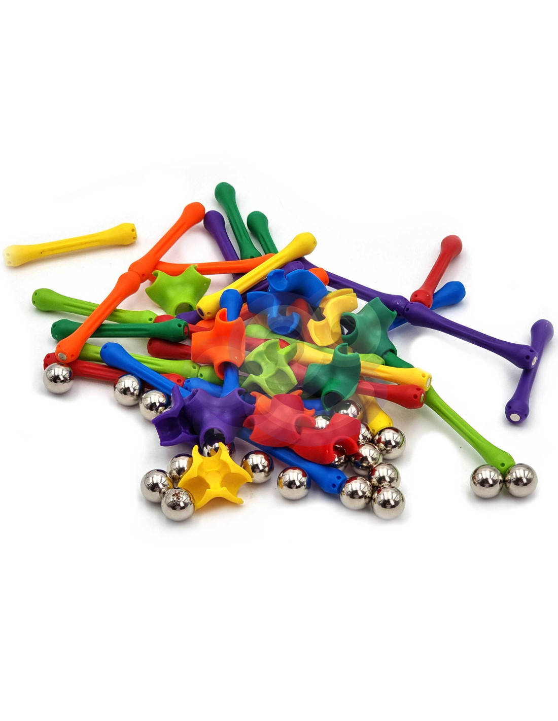 - - zestaw klocków magnetycznych 70 el + inspiracje z instrukcją składania,