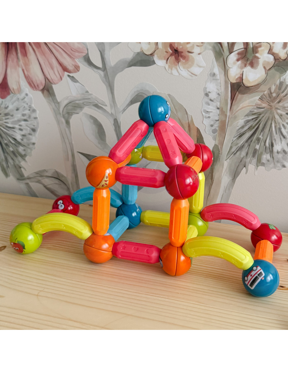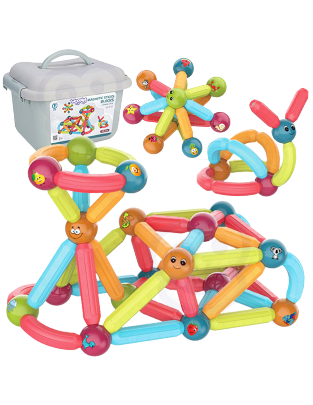 Zestaw grubych klocków magnetycznych od marki WOOPIE łączy ze sobą zabawę i naukę! Wystarczy, że młody konstruktor połączy ze sobą elementy i zacznie tworzyć wymyślne budowle oraz wiele innych układów np. figury geometryczne czy mini domek! Ograniczeniem jest tylko wyobraźnia. Zestaw zawiera 76 elementów oraz kartę ze wzorami. Klocki są grube, różnokolorowe i bezpieczne - idealne dla rączek małych dzieci. Funkcje edukacyjne klocków: nauka alfabetu, nauka liczenia i nauka kształtów. Kulki mają na sobie m.in zwierzątka i uśmiechy. Wszystko zapakowane w wygodną skrzyneczkę. Układanie konstrukcji z klocków rozwija u dziecka kreatywność, zdolności manualne ("małą motorykę"), wyobraźnie przestrzenną oraz koncentrację.
