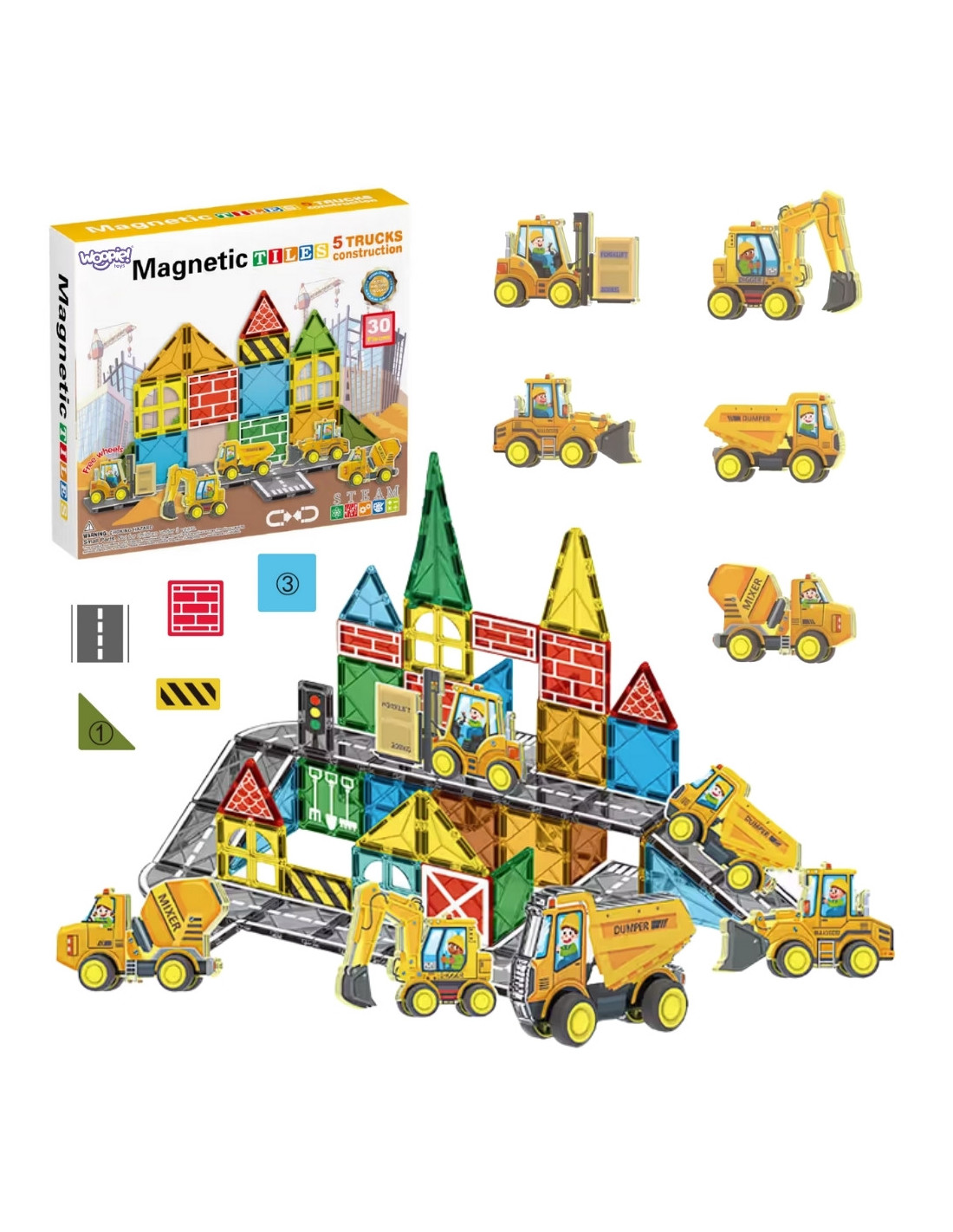Woopie Zestaw Klocków Magnetycznych z Pojazdami Budowlanymi