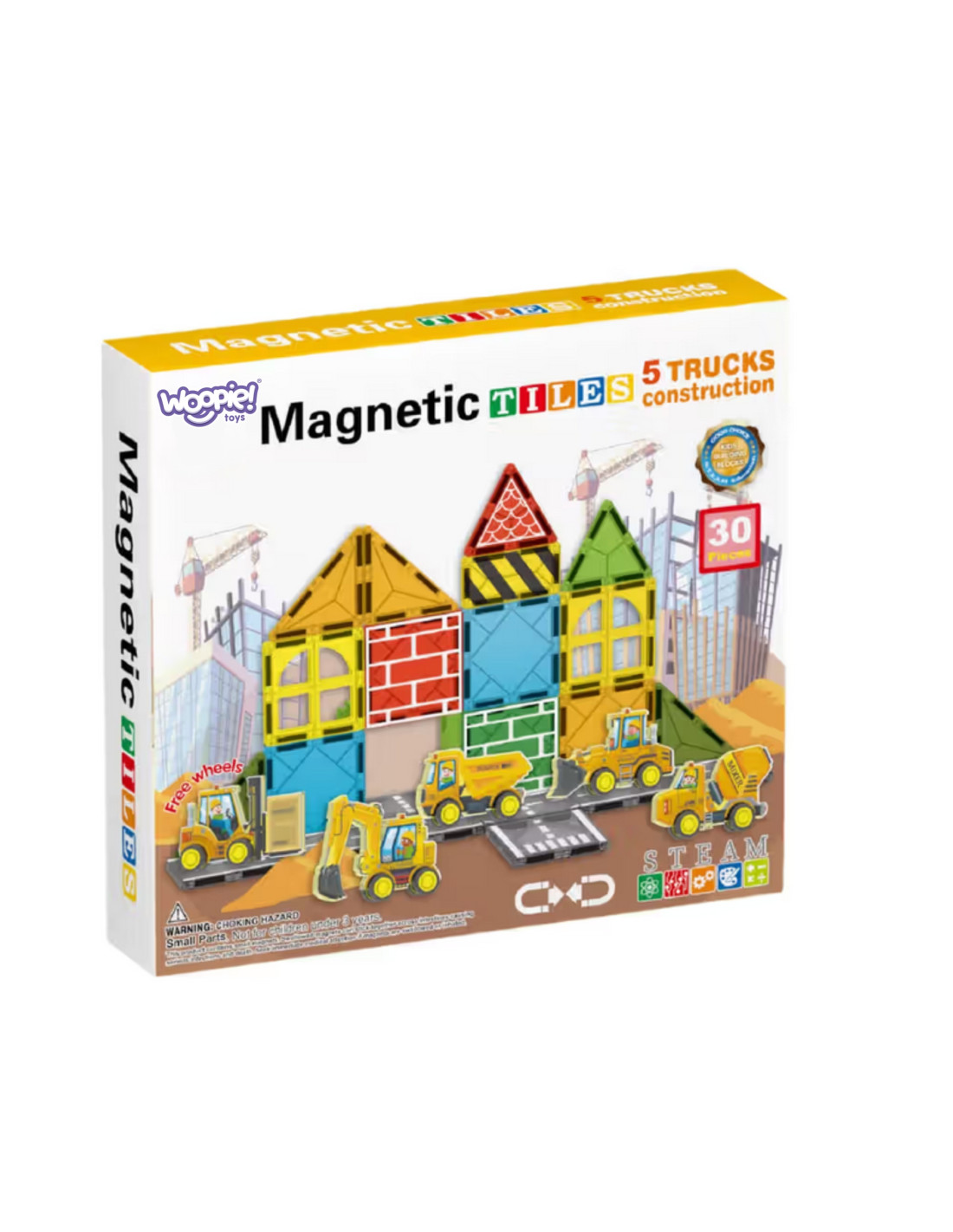 Zestaw klocków magnetycznych z pojazdami budowlanymi od marki Woopie łączy kreatywność z fascynującym światem budowy. Magnetyczne elementy pozwalają dzieciom tworzyć stabilne, kolorowe konstrukcje, a realistyczne pojazdy (z wolnymi kołami) zachęcają do zabawy w małych inżynierów. Zestaw zawiera 30 elementów o wymiarze 7,5 × 7,5 cm — idealnych dla dziecięcych rączek. Produkt jest bezpieczny, trwały i prosty w łączeniu, dzięki czemu zabawa przebiega szybko i bez frustracji. To doskonały prezent rozwijający wyobraźnię, zdolności manualne i współpracę w grupie.
