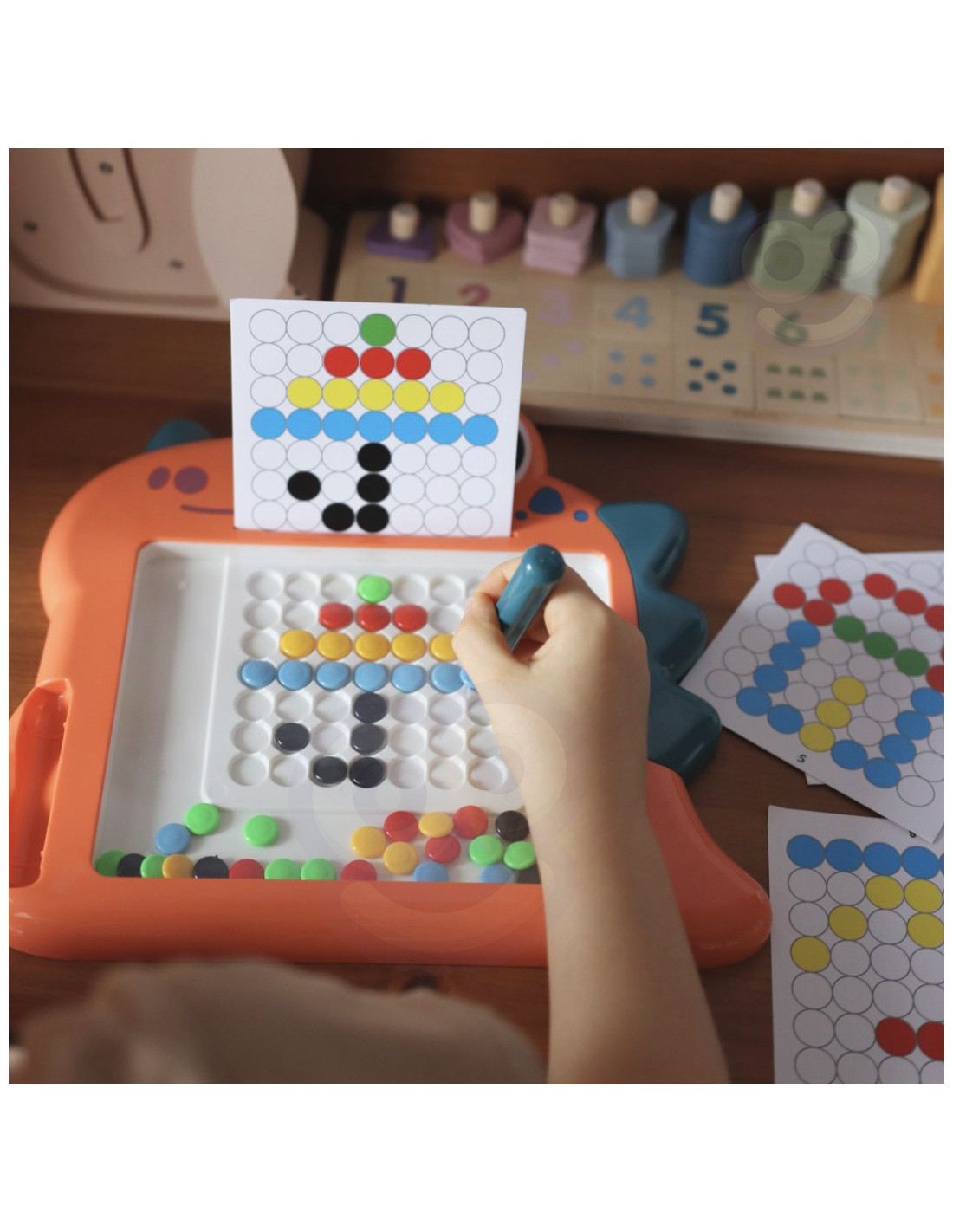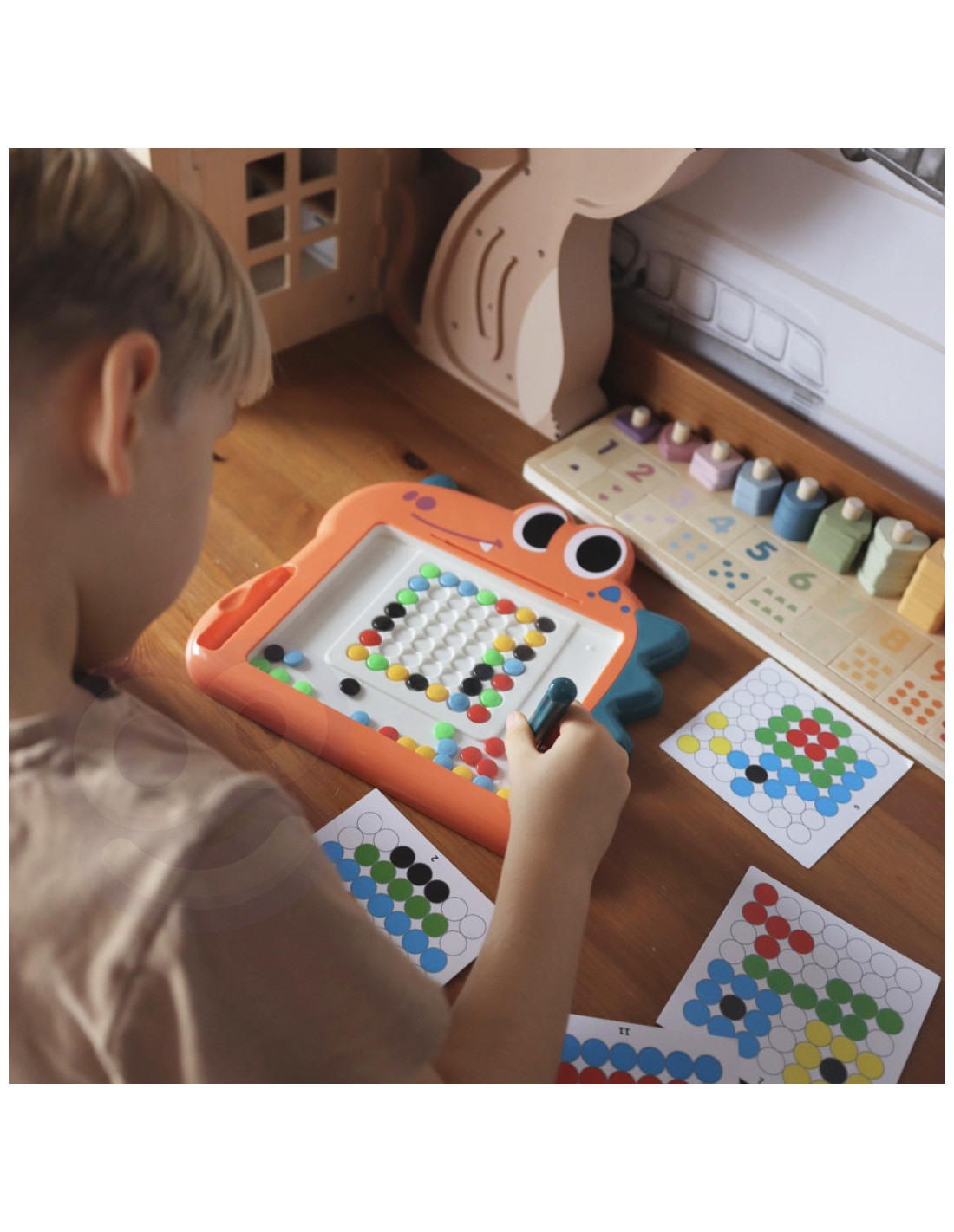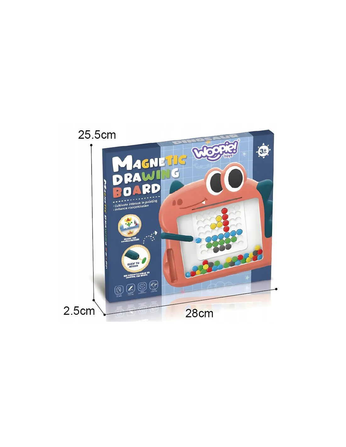 Tablica Magnetyczna MagPad od marki WOOPIE otwiera przed Twoim dzieckiem drzwi do świata kreatywności i edukacji. Dzięki tej wyjątkowej tablicy Twoje dziecko ma okazję tworzyć niepowtarzalne wzory i mozaiki. W skład zestawu, oprócz samej tablicy, wchodzi magnetyczny pisak oraz magnetyczne guziki do tworzenia. Ograniczeniem jest jedynie wyobraźnia i kreatywność - maluch może swobodnie układać wzory według własnych pomysłów. Guziki są mocne i trwałe, a układanie jest intuicyjne i proste. Ten zestaw to nie tylko zabawa, ale też doskonałe narzędzie do nauki i rozwijania zdolności manualnych, koncentracji oraz wyobraźni.