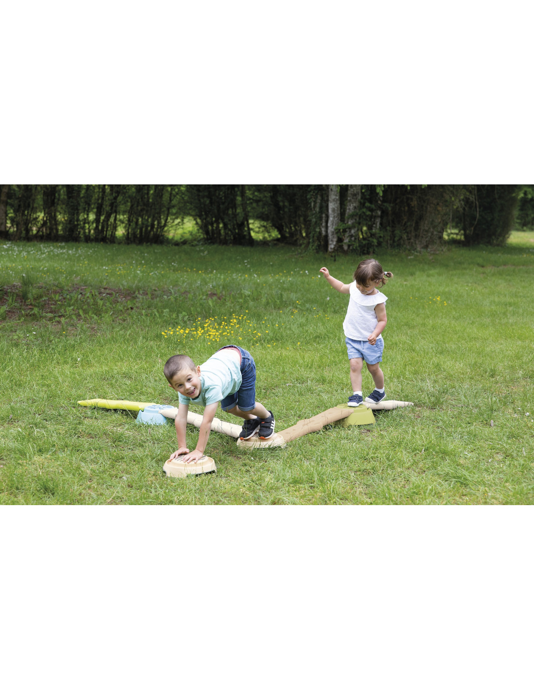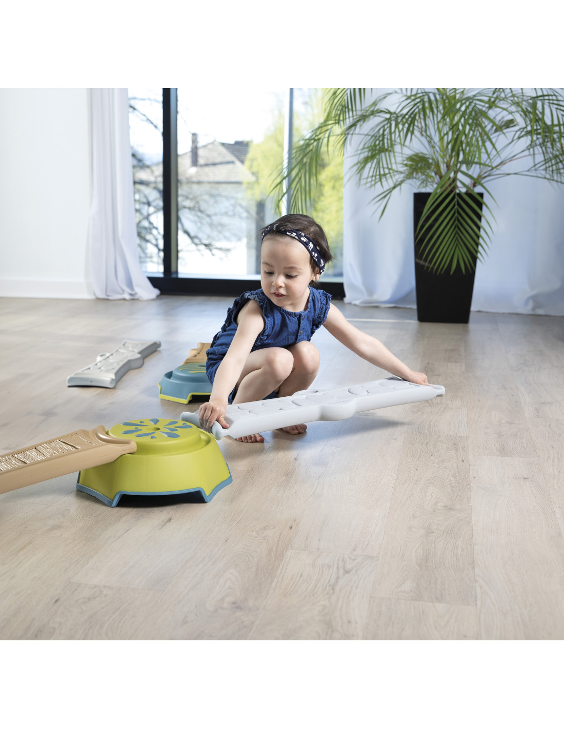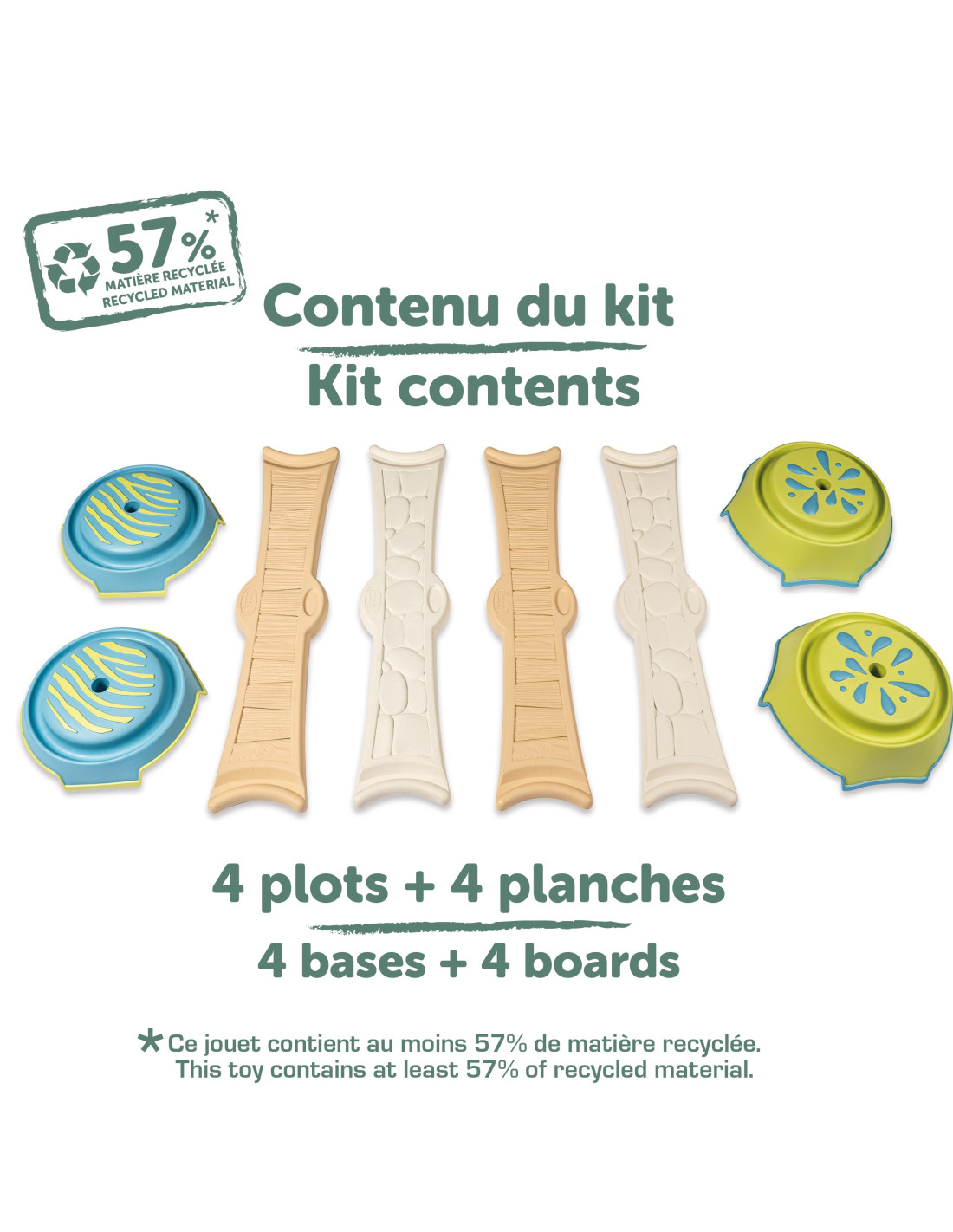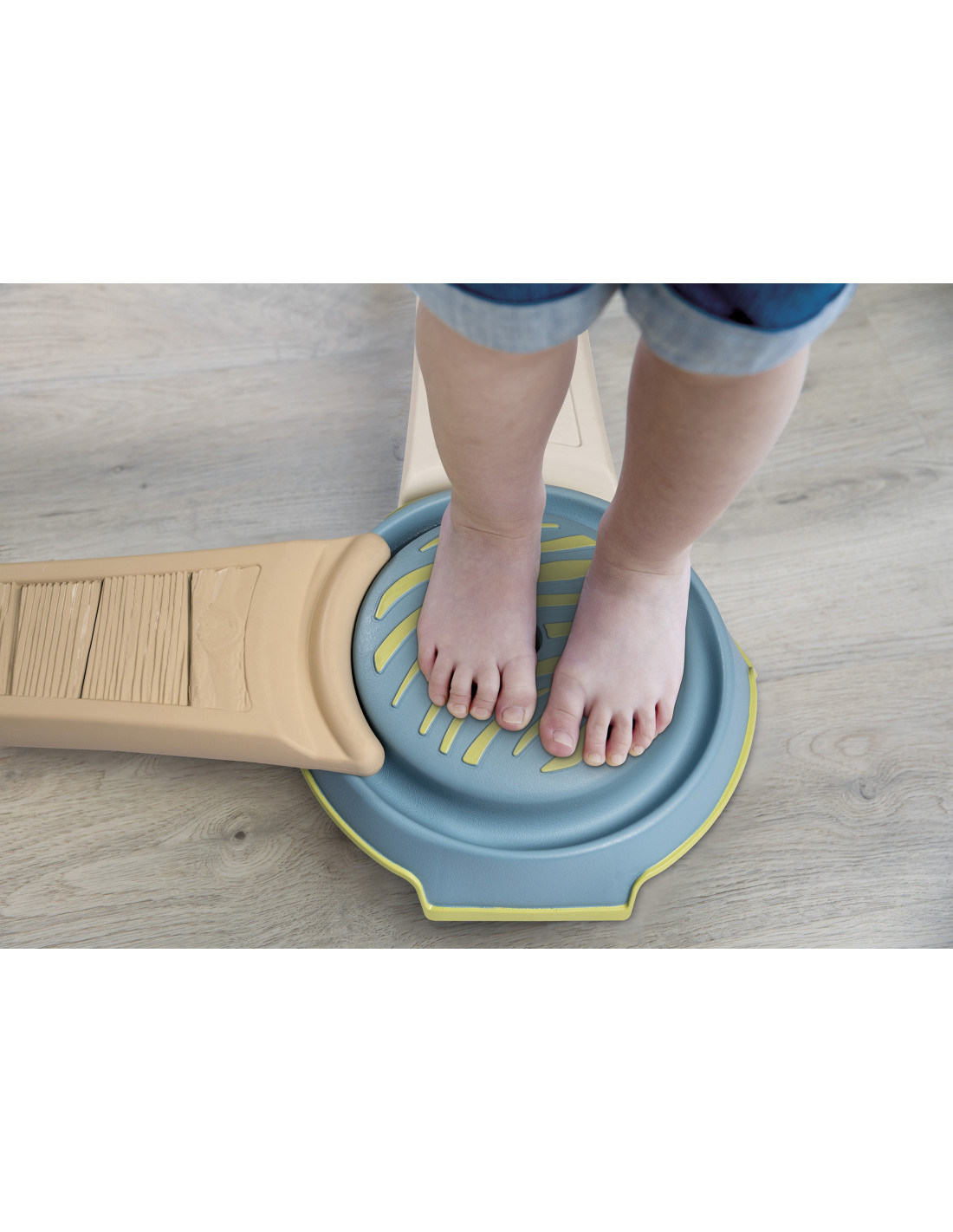 Zestaw składa się z czterech długich (70 cm) paneli o zróżnicowanej fakturze oraz czterech podstaw do ich mocowania. Możliwość dowolnej konfiguracji elementów pozwala stworzyć nawet 3,5-metrową trasę, dostosowaną do umiejętności dziecka. Ścieżkę warto przechodzić na boso, co zwiększa doznania sensoryczne i pozytywnie wpływa na rozwój układu nerwowego.