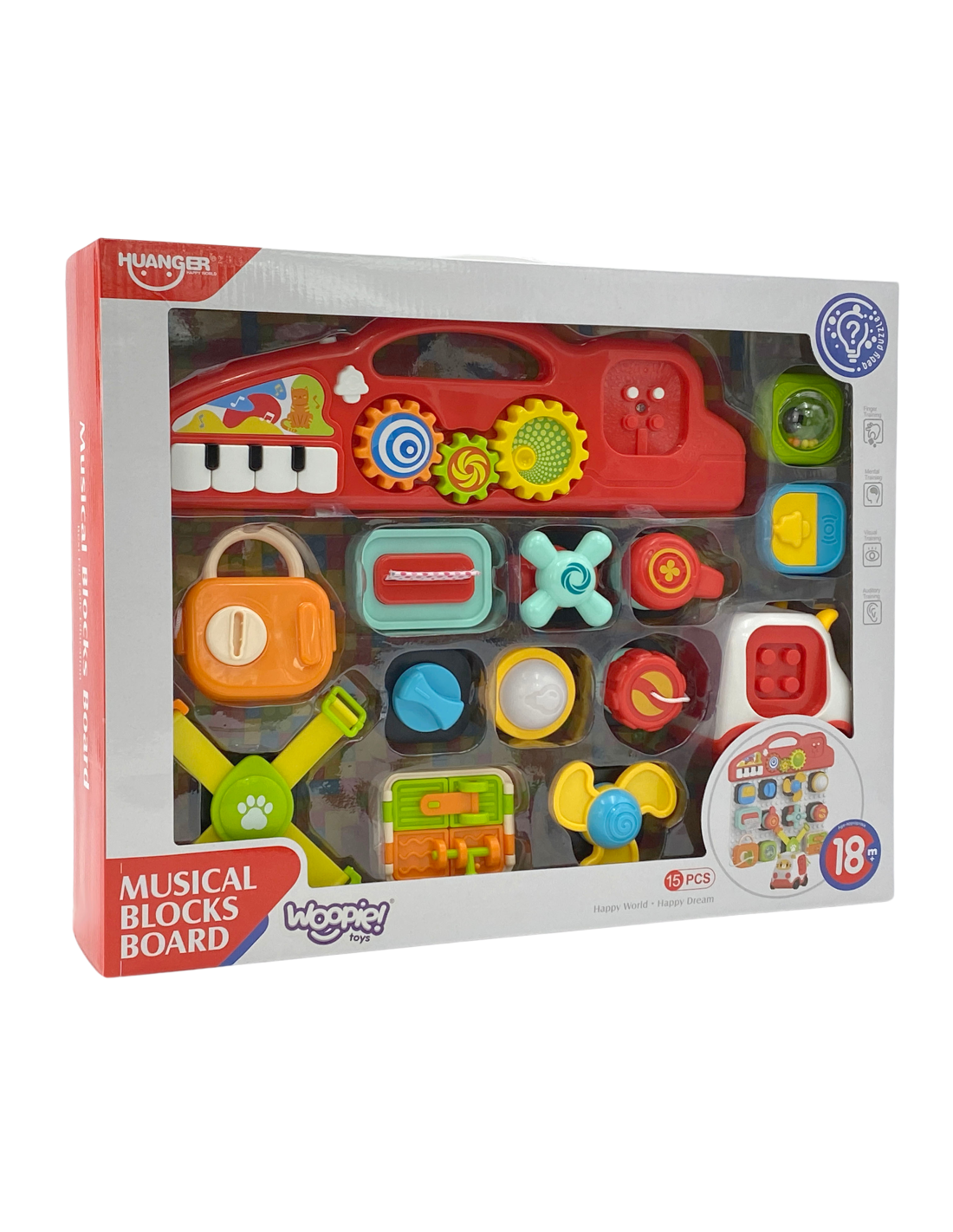 Kolorowy panel aktywności od marki Woopie to fascynująca zabawka rozwojowa zaprojektowana z myślą o wspieraniu rozwoju sensorycznego i motorycznego u dzieci. Panel składa się z różnorodnych interaktywnych elementów, które można dowolnie przyczepić i odczepić, podobnie jak klocki. W zestawie znajdziemy również samochodzik w kształcie kotka do którego można dowolnie doczepiać elementy z tablicy.