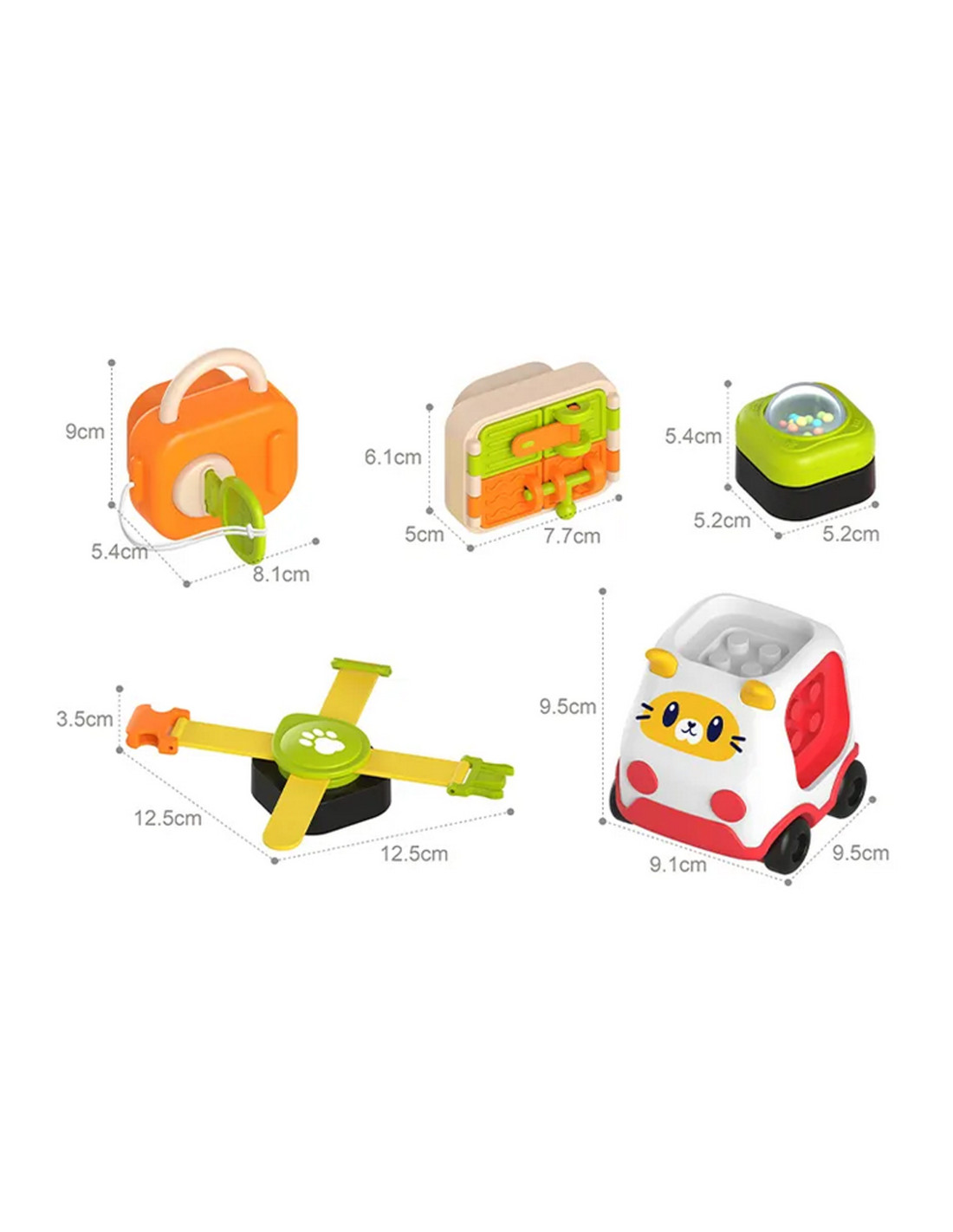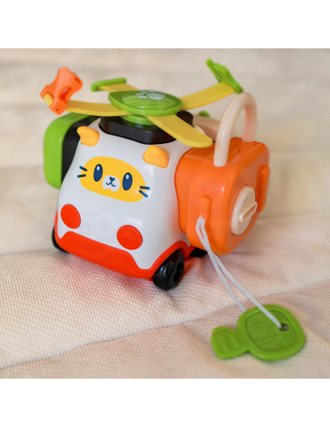 - - samochodzik kotek plus 4 manipulacyjne doczepiane klocki