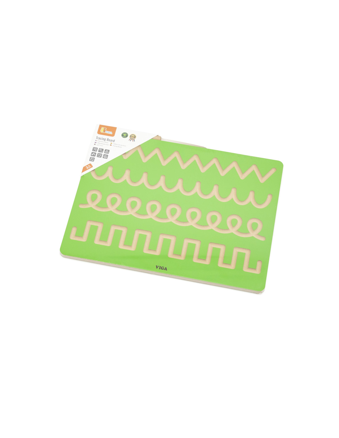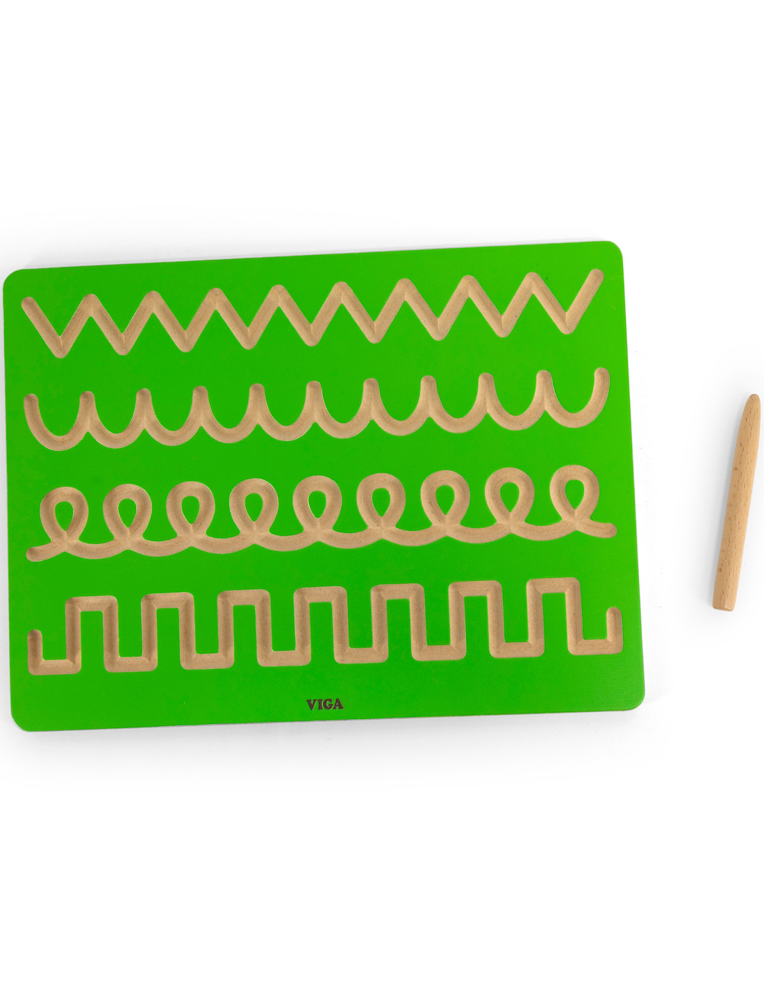 Tablica kreślarska od marki VIGA to idealna propozycja dla dzieci do trenowania rączki przed nauką pisania. Delikatnie wygrawerowane i zakrzywione rowki sprawiają, że idealnie nadaje się dla dzieci do kontrolowania ruchu dłoni i kształtowania pamięci mięśniowej poprzez wielokrotne śledzenie. Tablica jest dostępna w kompaktowych rozmiarach, dzięki czemu dzieci mogą ją trzymać i używać na stole lub biurku.Dziecko poprzez zabawę uczy się ruchów odpowiedzialnych w przyszłości za rysowanie i pisanie, kształci płynność ruchów oraz ćwiczy koordynację wzrokowo - ruchową.