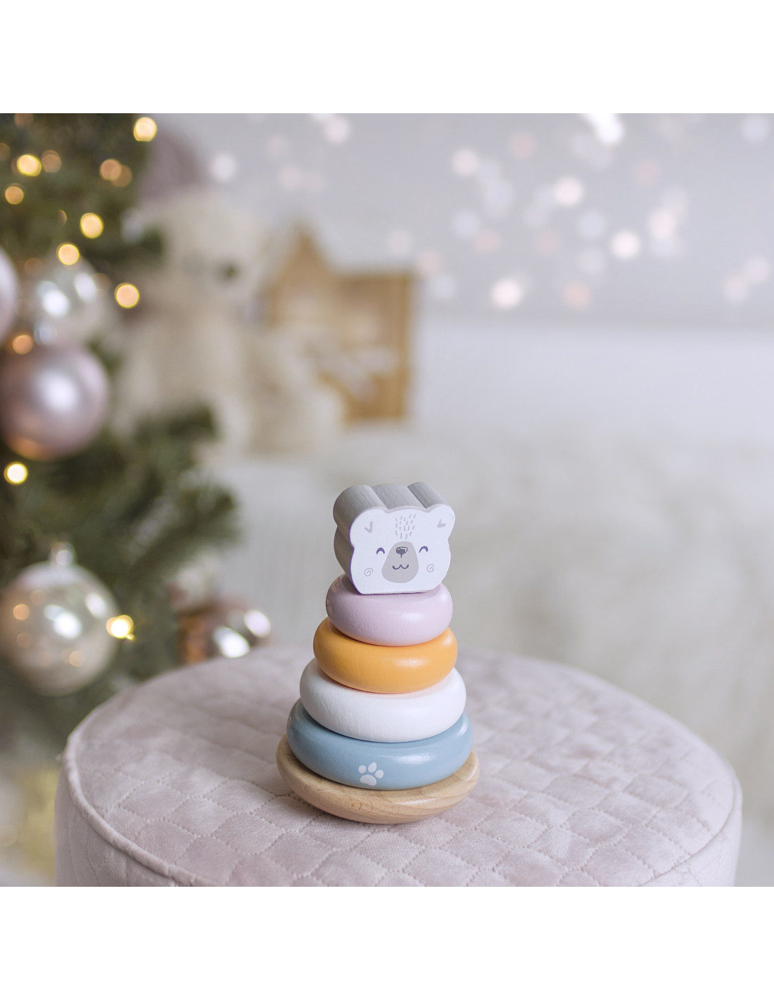 VIGA PolarB Zestaw Drewniana Piramidka + Przebijanka z Młoteczkiem Miś Polarny Montessori