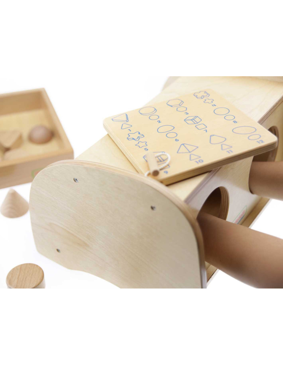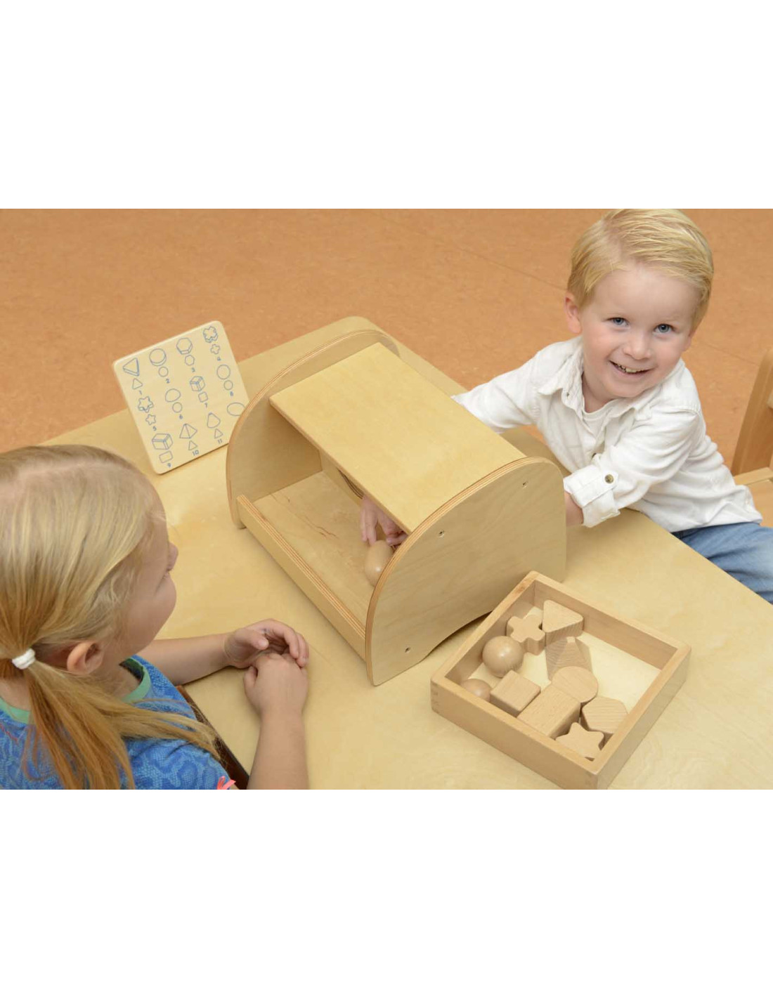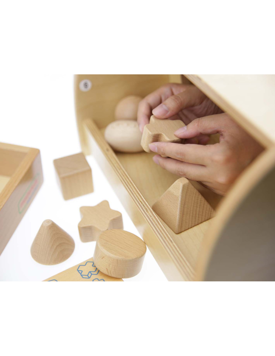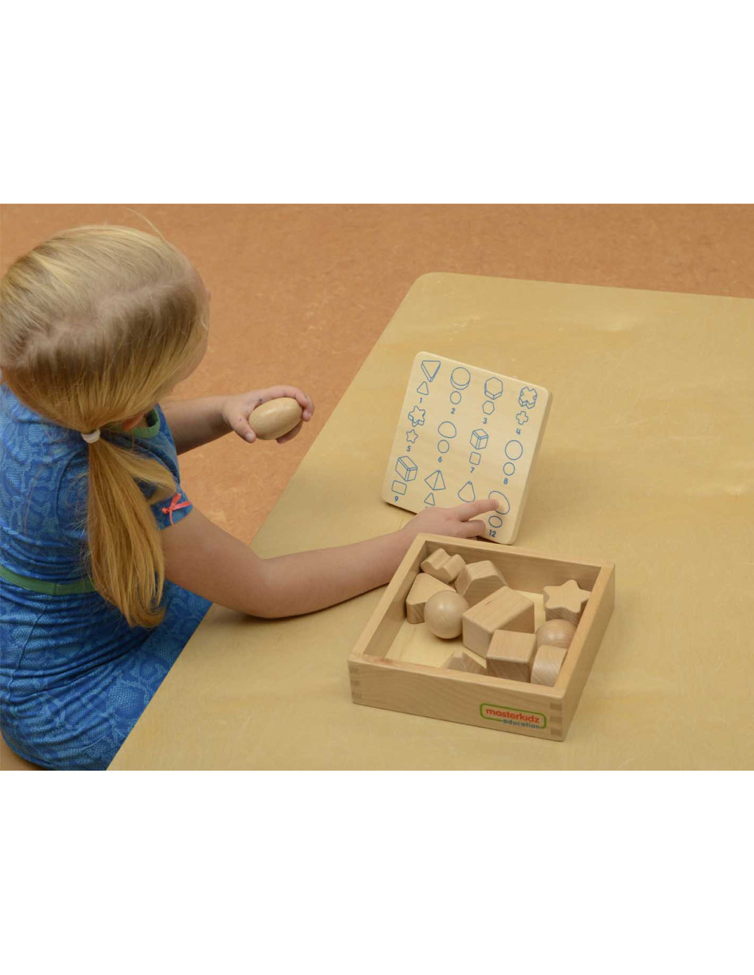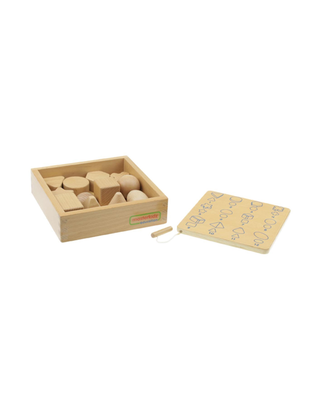 Drewniany Zestaw Sensoryczny Masterkidz to edukacyjna zabawka, która pomaga dzieciom rozwijać zmysł dotyku oraz utrwalać znajomość figur geometrycznych. Zestaw składa się z 12 drewnianych bloczków o różnych kształtach. Zadaniem dziecka jest odgadnięcie, jaki kształt trzyma w ręce, korzystając wyłącznie z dotyku, bez patrzenia na nią. To doskonały sposób na ćwiczenie rozpoznawania kształtów oraz naukę poprzez zabawę. Zabawka została zapakowana w praktyczne drewniane pudełko, które ułatwia przechowywanie. Komplet najlepiej sprawdzi się w połączeniu z pudełkiem do gry Zgaduj Dotykiem (ME04055)