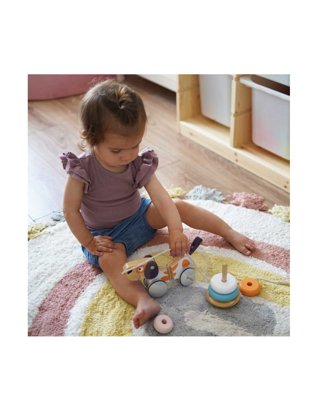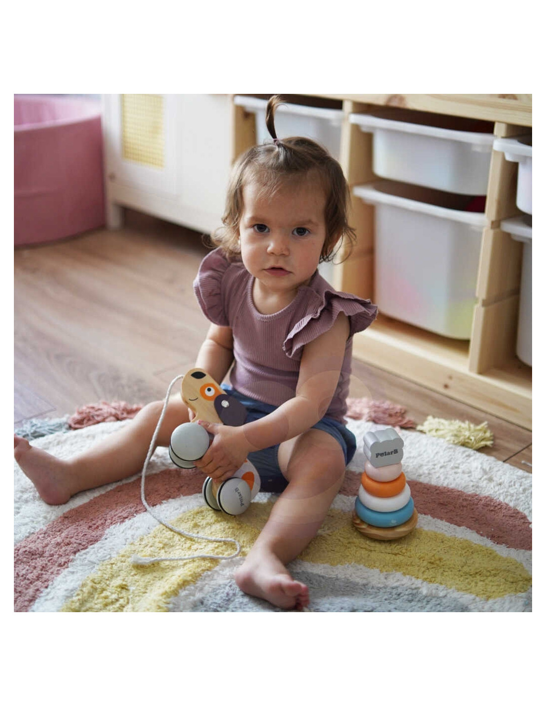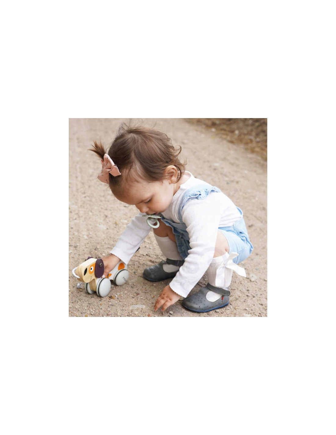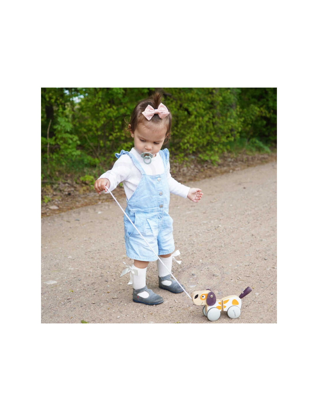 Polarny Drewniany Piesek na sznurku od firmy Viga Toys sprawdzi się jako dodatkowa zachęta do chodzenia dla dzieci, które uczą się stawiać pierwsze kroki. Modna i stonowana kolorystyka idealnie wzbogaci posiadaną kolekcję zabawek.
