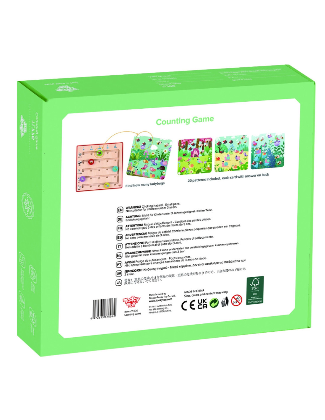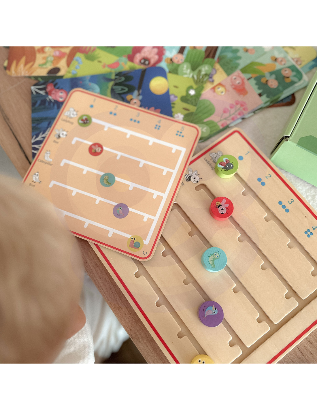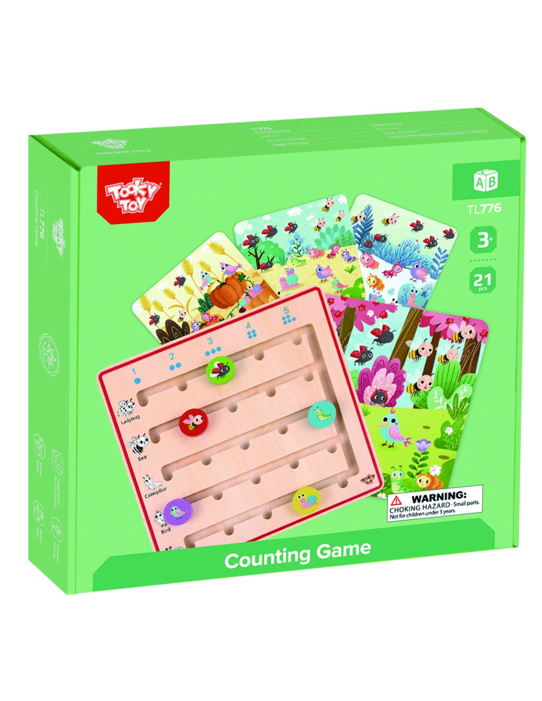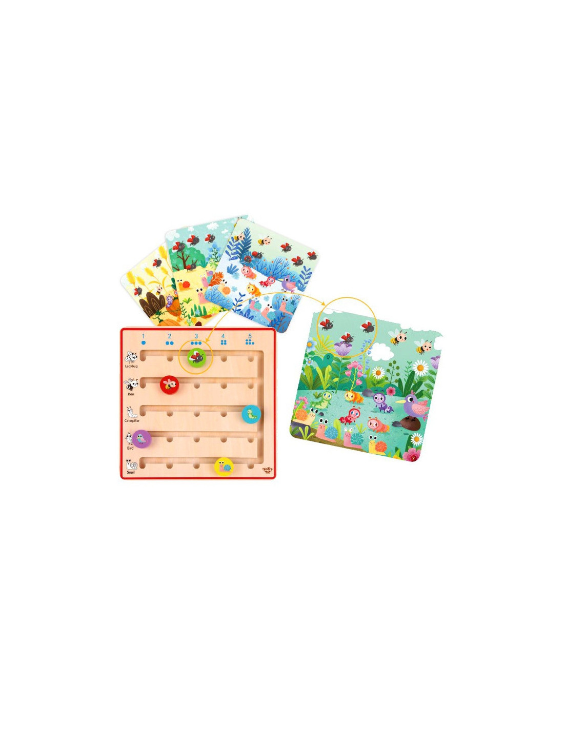 Drewniana gra od Tooky Toy wspomaga naukę liczenia poprzez zabawę. Leśny motyw przeniesie brzdąca w świat małych, leśnych przyjaciół: biedroneczki, ptaszka, ślimaczka, gąsieniczki i pszczółki, które będą towarzyszyć przez cały czas zabawy. Producent wybierając najwyższej jakości, ekologiczne materiały zadbał o bezpieczeństwo dzieci i środowiska.