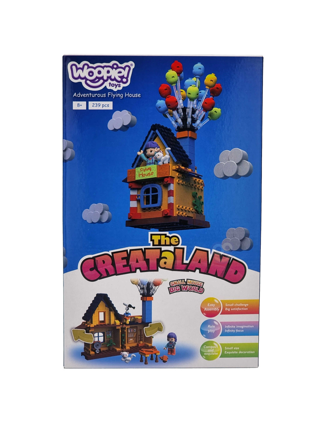 Klocki dla Dzieci Latający Dom z Balonami od marki WOOPIE dostarczą nieskończona ilość zabawy oraz wspaniałych historii. W skład zestawu wchodzi 239 klocków, w tym postać dziewczynki i jej przyjaciela kota. Do zbudowania jest dom wraz z jego zawartością. Ciekawymi realistycznymi elementami są m.in. stół czy lornetka. Domkiem można się bawić w 2 pozycjach - możliwe jest rozłożenie domu w celu zabawy wewnątrz. Budując świat oraz wcielając się w postacie, dziecko rozwija wyobraźnię i kreatywność, koncentrację, ćwiczy zdolności motoryczne ("małą motorykę") i językowe, a odgrywanie scenek i tworzenie własnych historii zabawy pozwala, także pobudzić świadomość społeczną oraz inteligencję emocjonalną u najmłodszych.