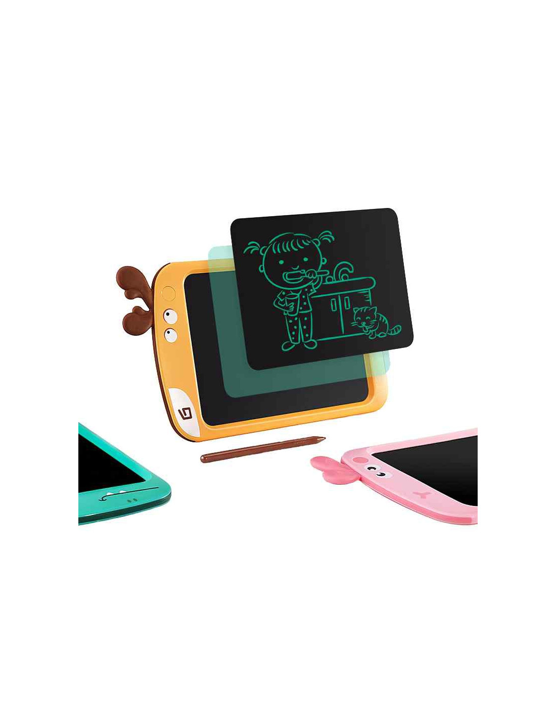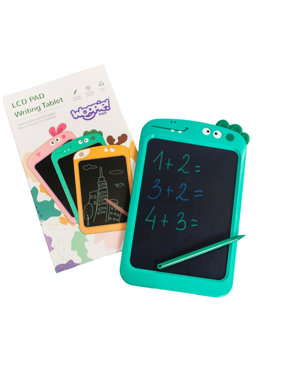 Lekki i wytrzymały tablet 8.5" LCD/znikopis marki WOOPIE służy do rysowania lub nauki pisania. Można go używać zarówno w domu jak i w podróży. Twórz, rysuj, pisz i licz, a następnie jednym przyciskiem usuń zapis i rozpocząć zabawę od nowa. Bardzo czuła matryca umożliwia dziecku pisanie dołączonym do zestawu rysikiem dokładnie tak, jak ołówkiem. Grubość linii zależy od siły nacisku na ekran tabletu. Tablet posiada blokadę zabezpieczającą przed przypadkowym usunięciem rysunku.