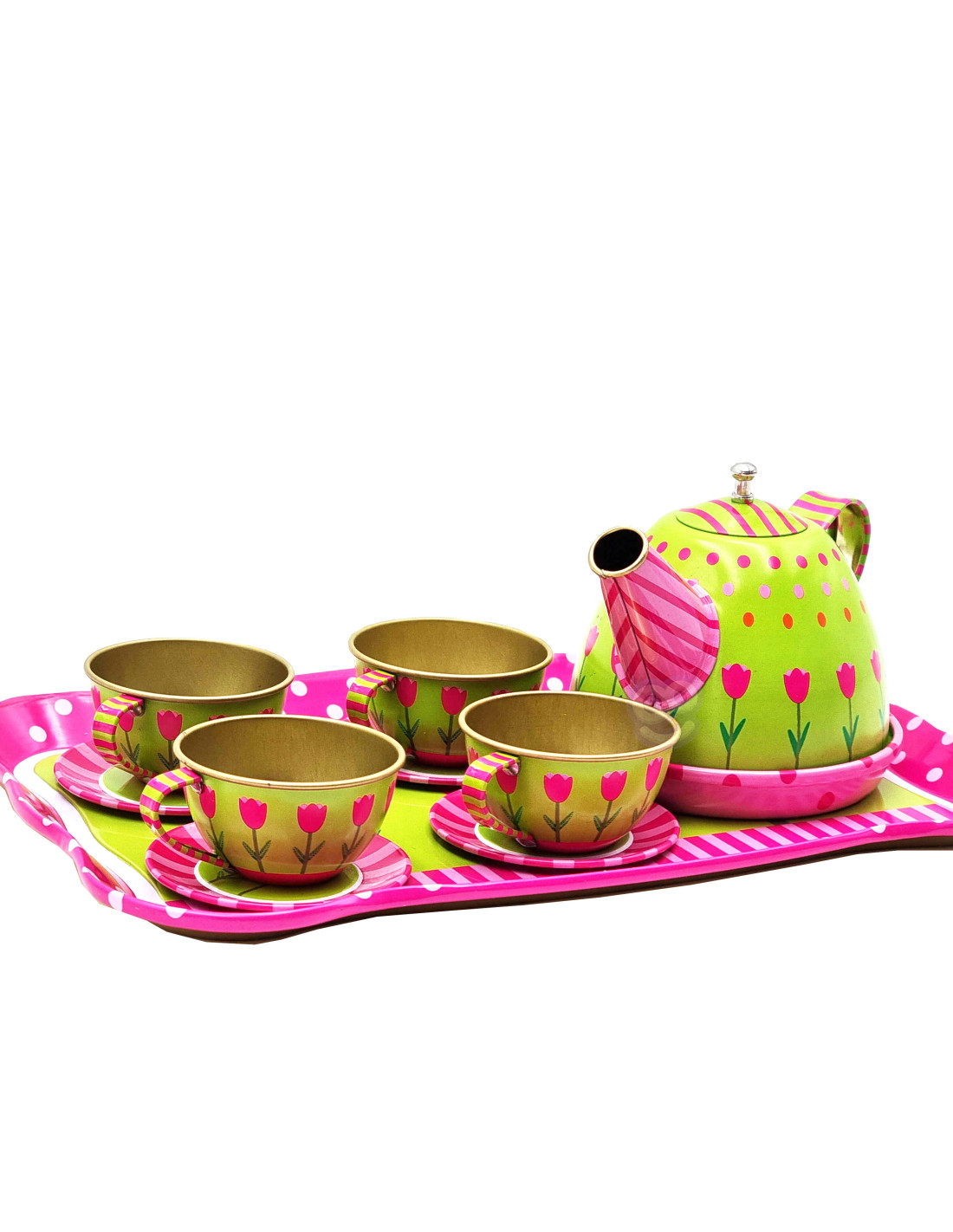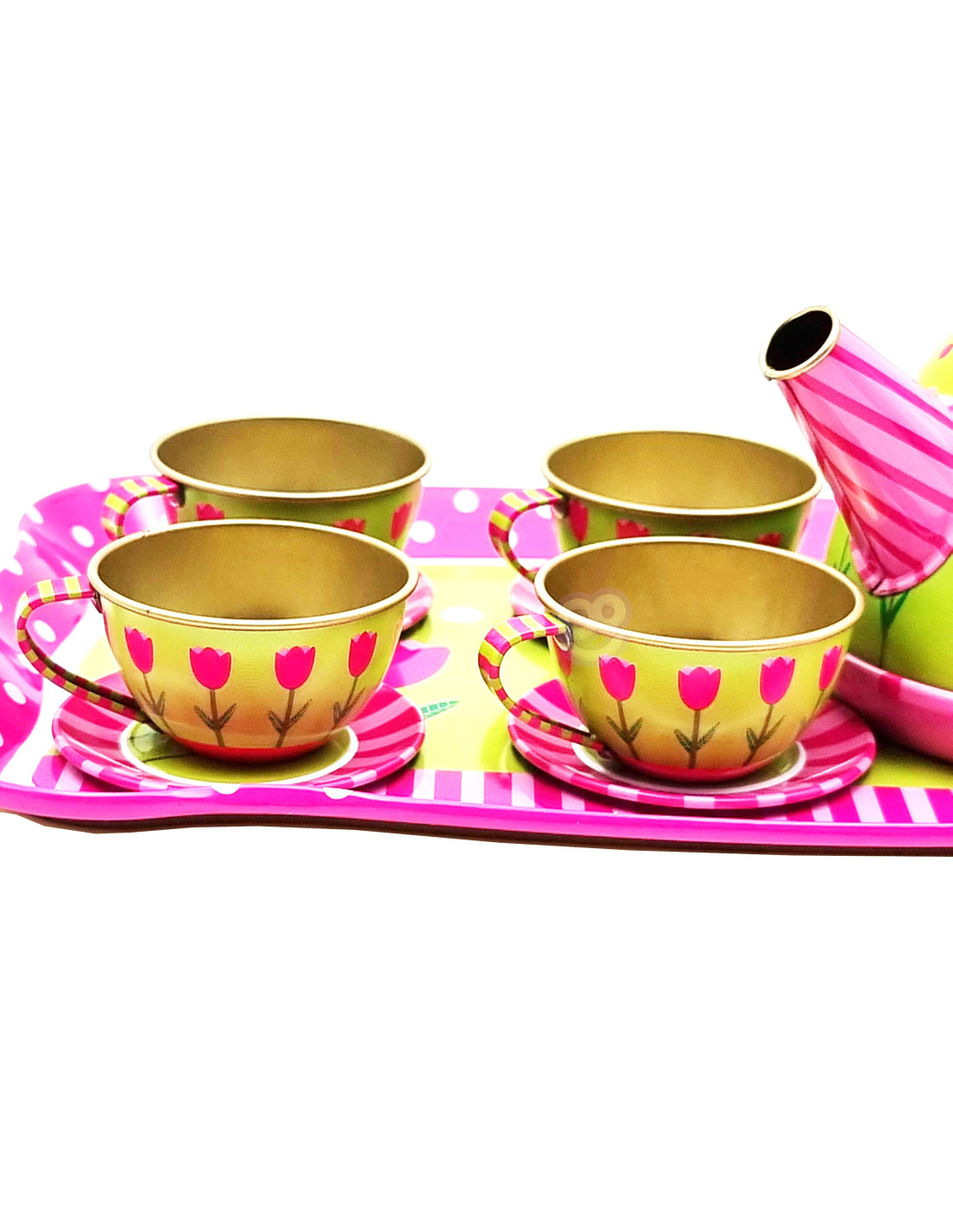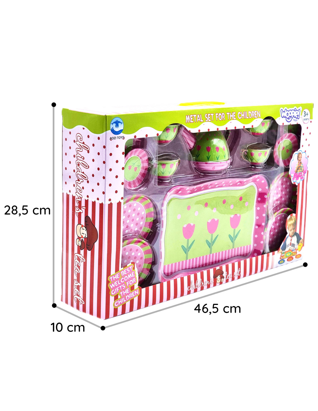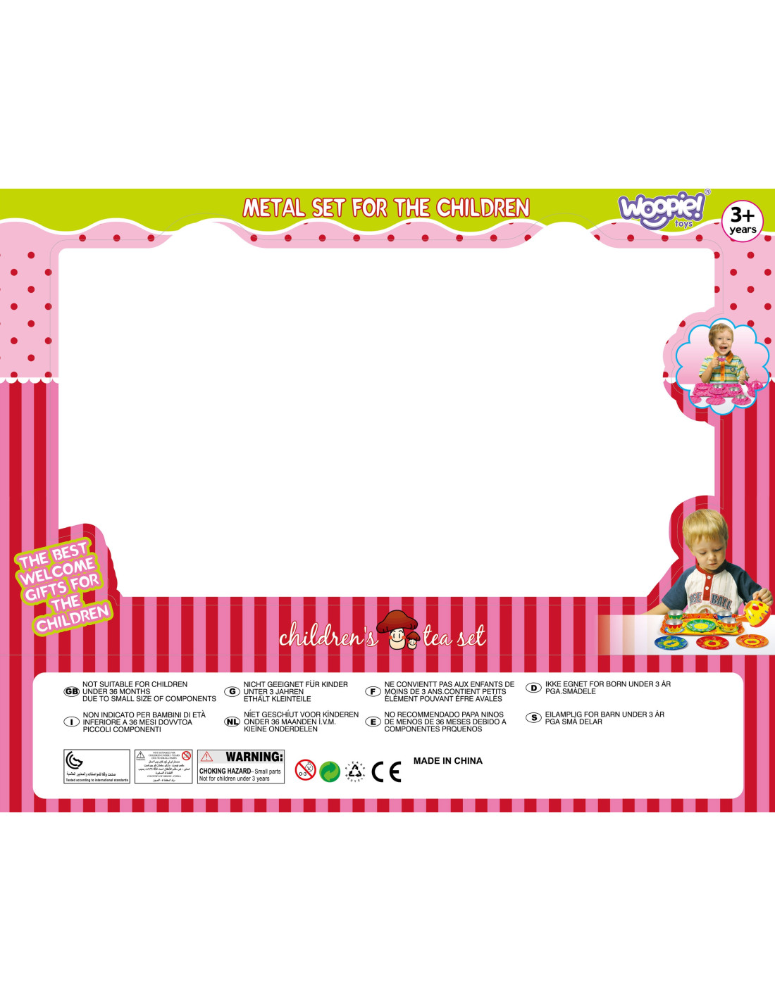 Zestaw do herbaty firmy Woopie to coś czego Twój maluch potrzebuje. Zestaw jest metalowy co daje pewność że nie zniszczy się tak szybko, nawet przy upadku. W pudełku jest dzbanuszek, filiżanki, talerzyki i talerze oraz duża tacka z namalowanymi kwiatuszkami. Zestaw przeznaczony dla dzieci od 3 roku.